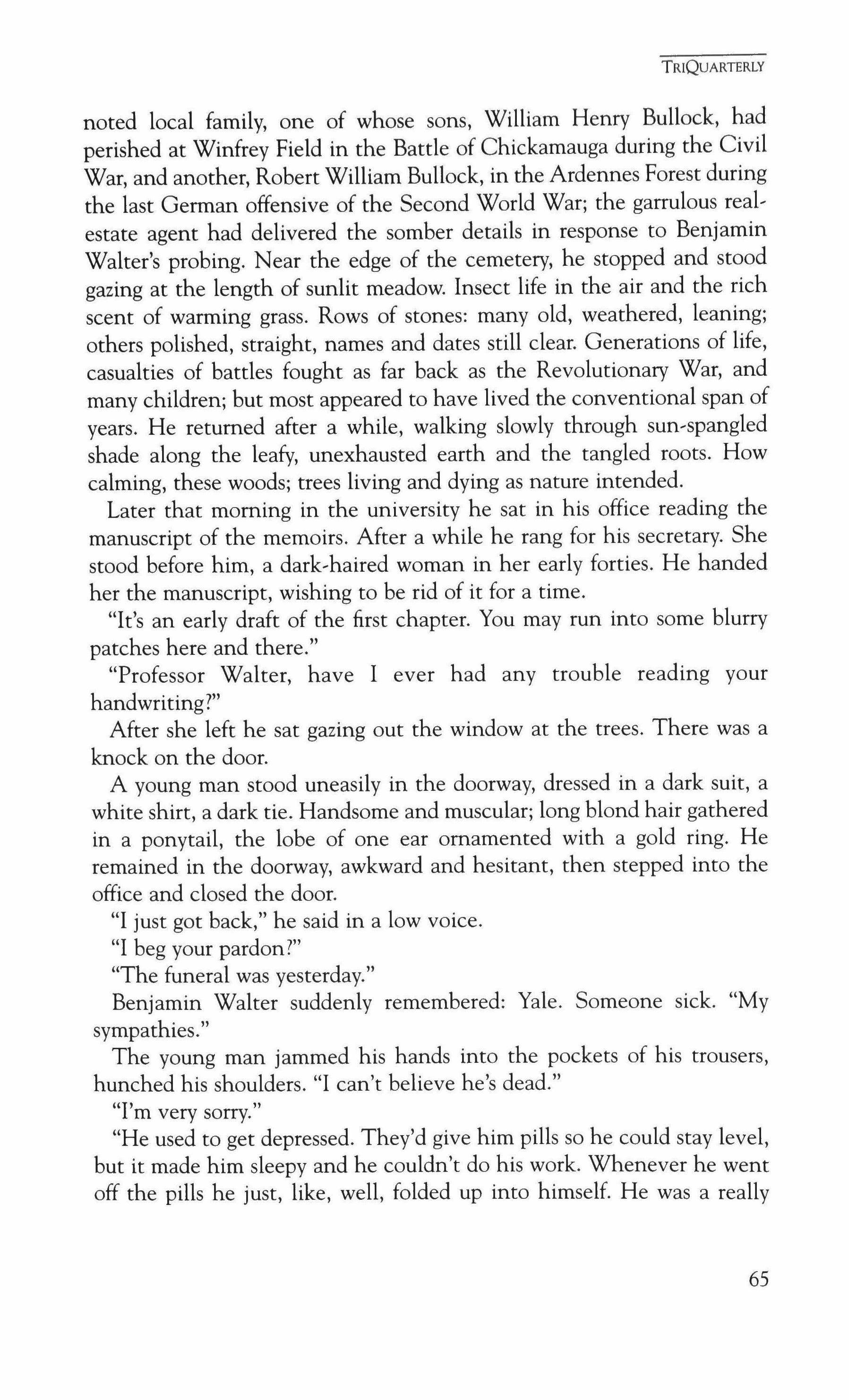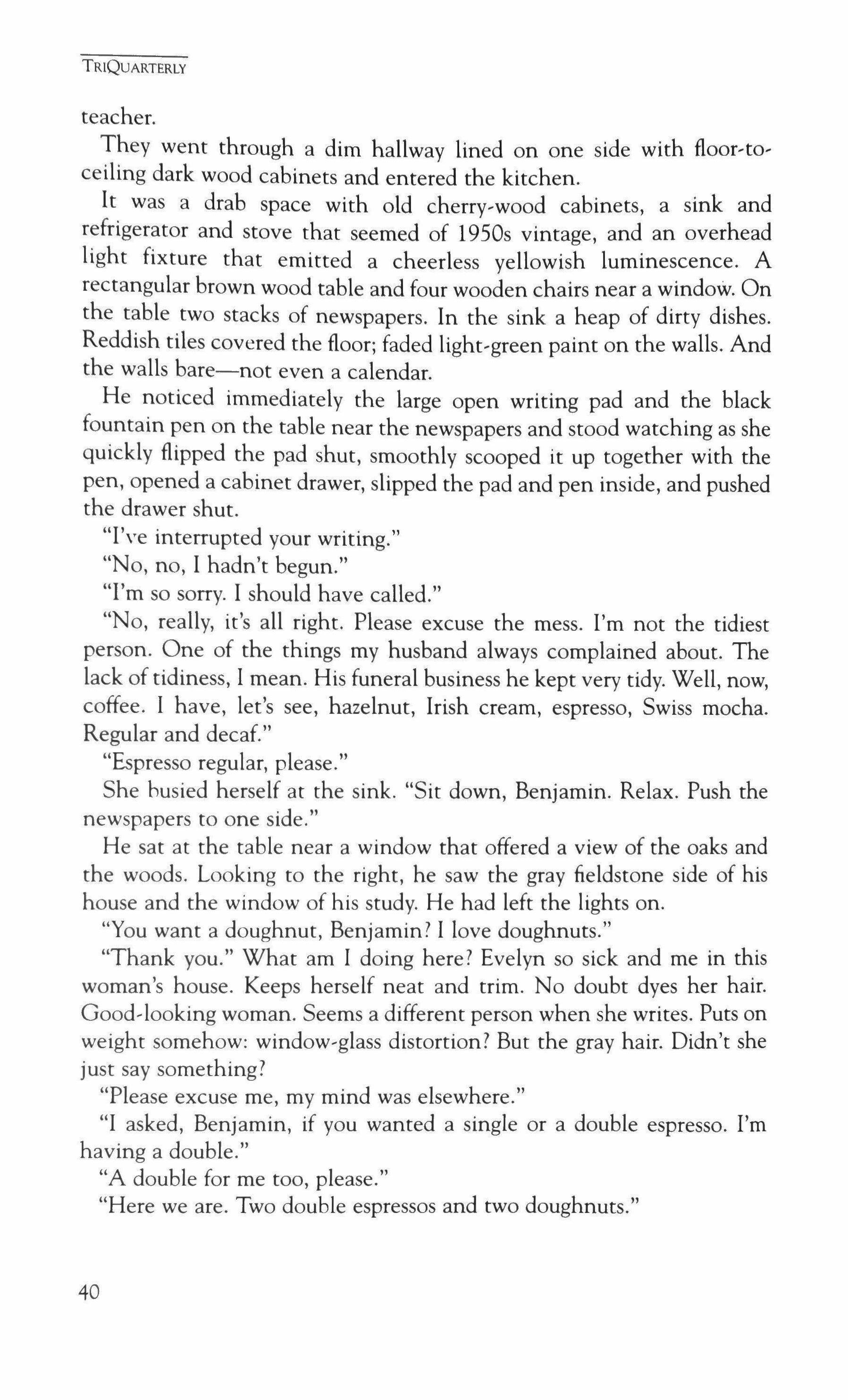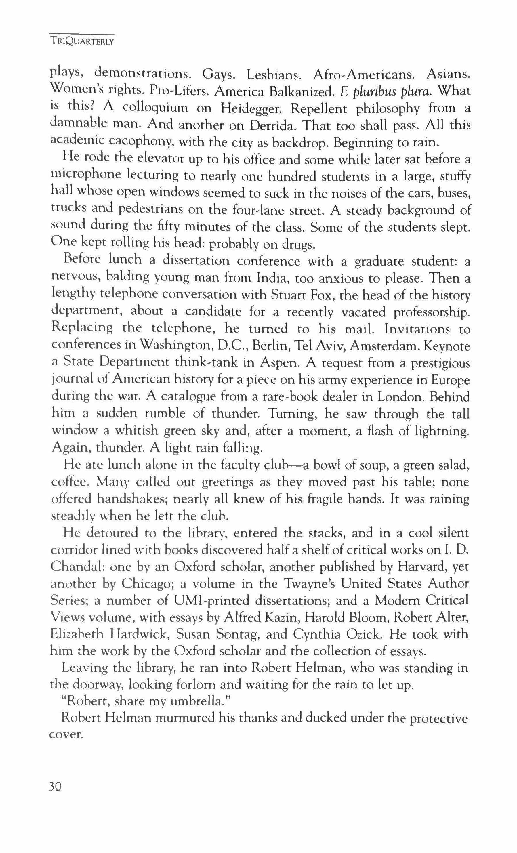 I'd like to thank President Henry Bienen for making all of this possible, and Associate Provost Eugene Lowe; Nicholas Weir,Williams, director of the press; and Kimberly Maselli, TriQuarterly's new publisher; for their enormous help with the transition. I have to say that during the many months while I was in my world of reading manuscripts, dealing with writers and filling issues, these people were working on the practical and delicate intricacies that made #101 (and all issues to follow) a reality.