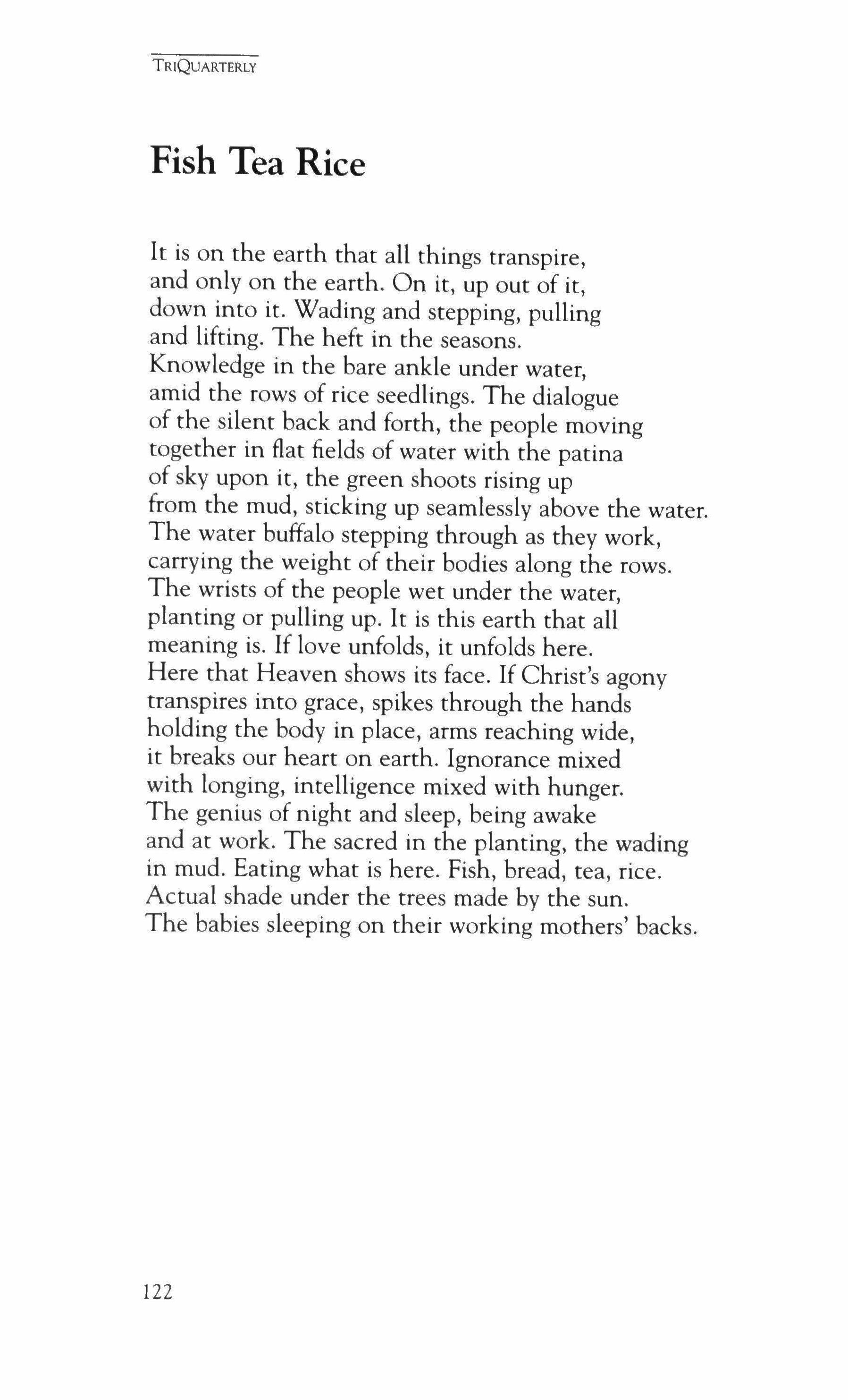 The Calves Not Chosen; Fish Tea Rice; The Precision poems