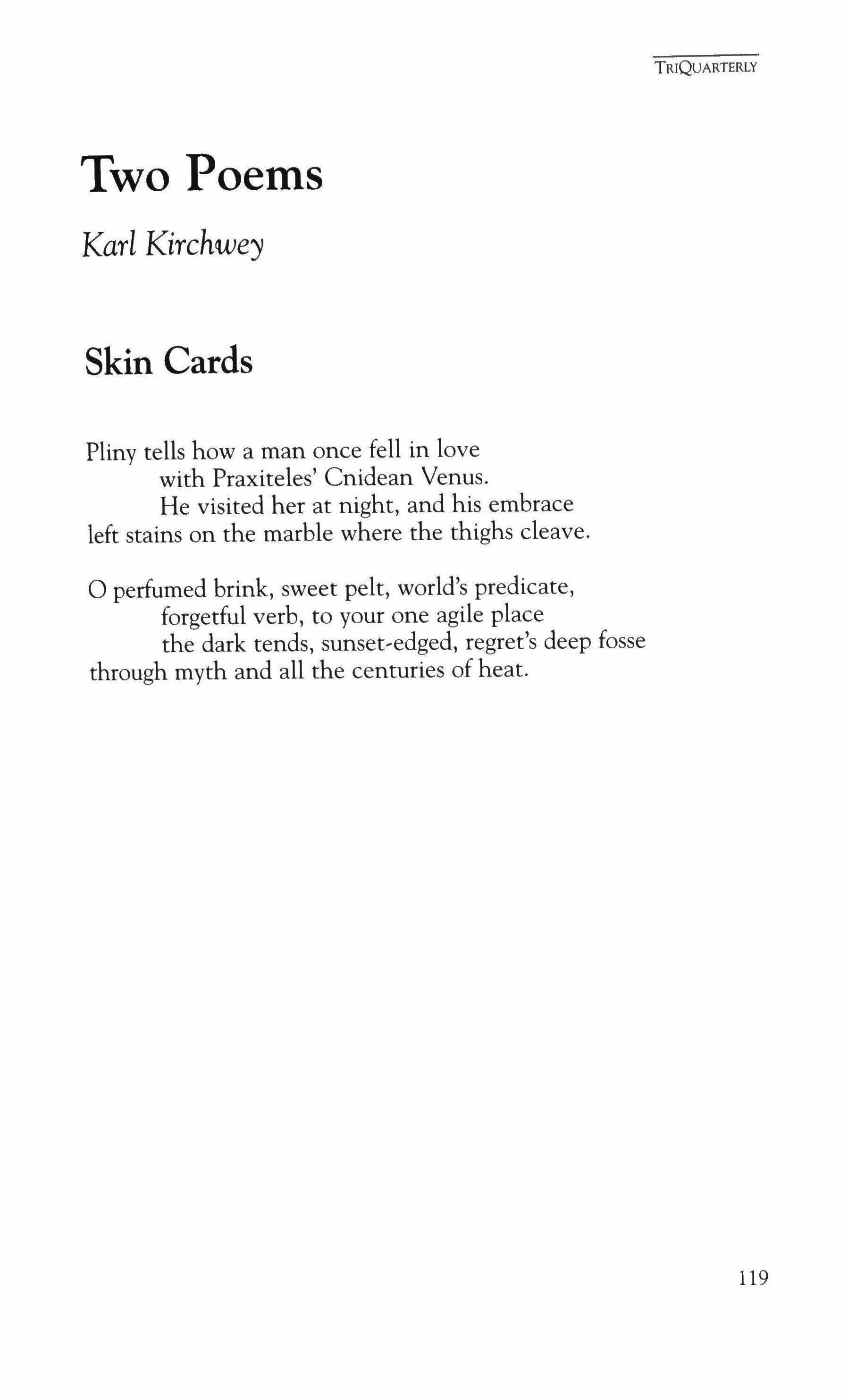 TRIQUARTERLY IS AN INTERNATIONAL JOURNAL OF WRITING, ART AND CULTURAL INQUIRY PUBLISHED AT NORTHWESTERN UNIVERSITY.