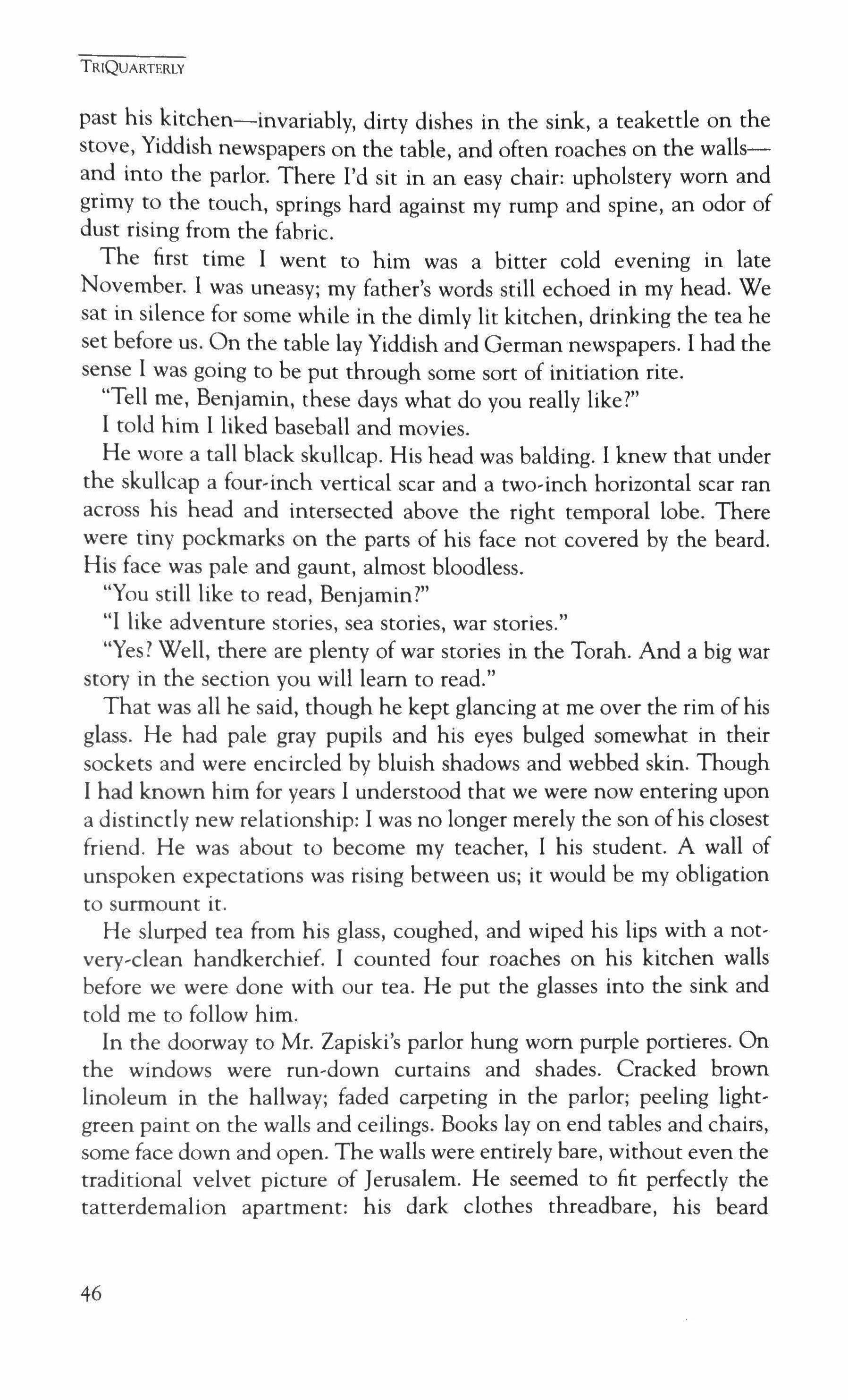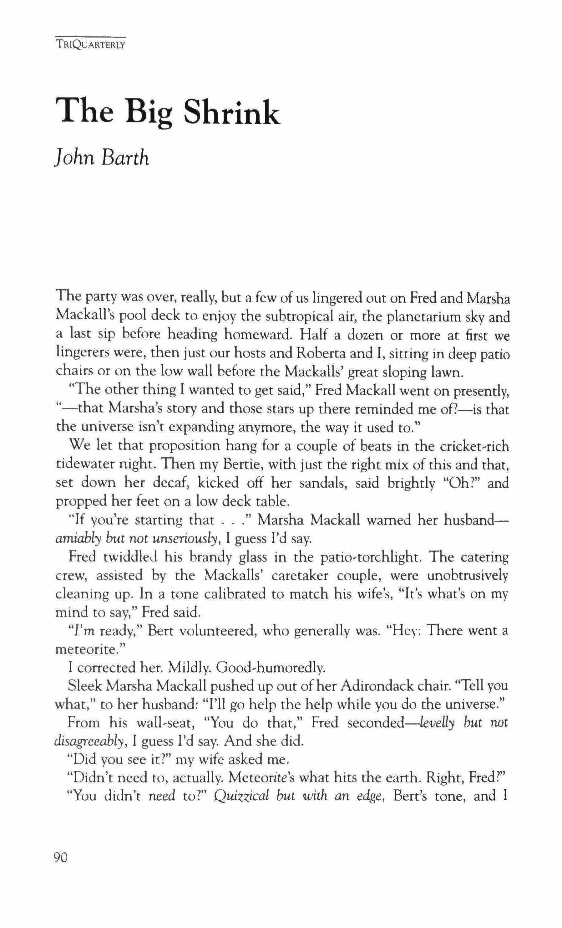 Contents At Cleopatra Bay; Catedral at Tlacolula; Shelling Beans Outside Pollenca; Death poems 9 Sandra M. Gilbert The Trope Teacher novella 15 Chaim Potok Autumn. A Mixed Music.; A Kind of Meadow; To Get There poems 84 Carl Phillips The Big Shrink story 90 John Barth Nothing; Woman in a Second Story Corner Room poems 100 Michael McFee from Scattered Psalms poems 102 Jacqueline Osherow The Facts poem l08 David Baker Frieze poem 111 Claire Malroux Translated from the French by Marilyn Hacker