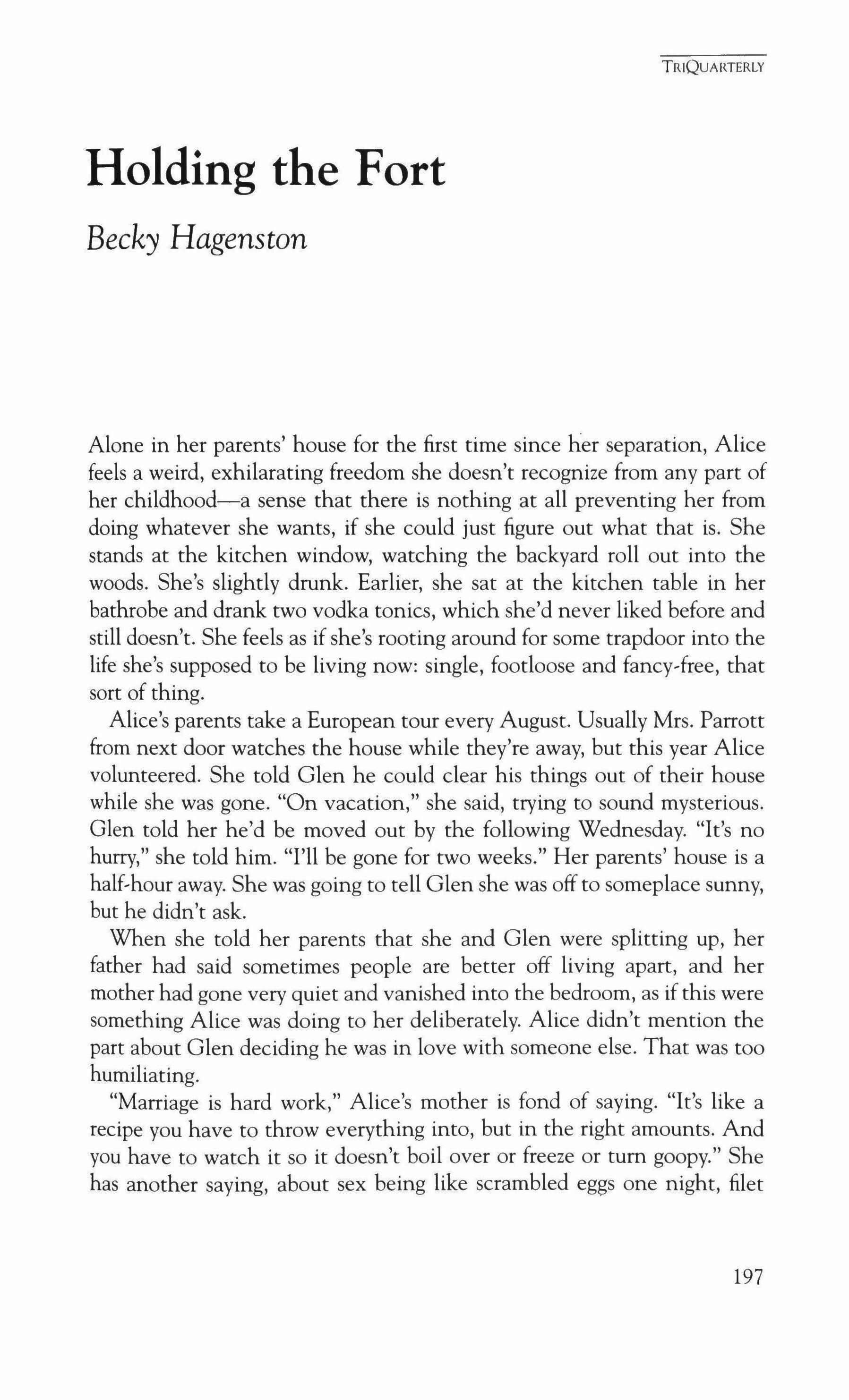 The editors invite submissions offiction, poetry and literary essays, which must be postmarked between October 1 and March 31; manuscripts postmarked between April 1 and September 30 will not be read. No manuscripts will be returned unless accompanied by a stamped, selfaddressed envelope. All manuscripts accepted for publication become the property of TriQuarterly, unless otherwise indicated.