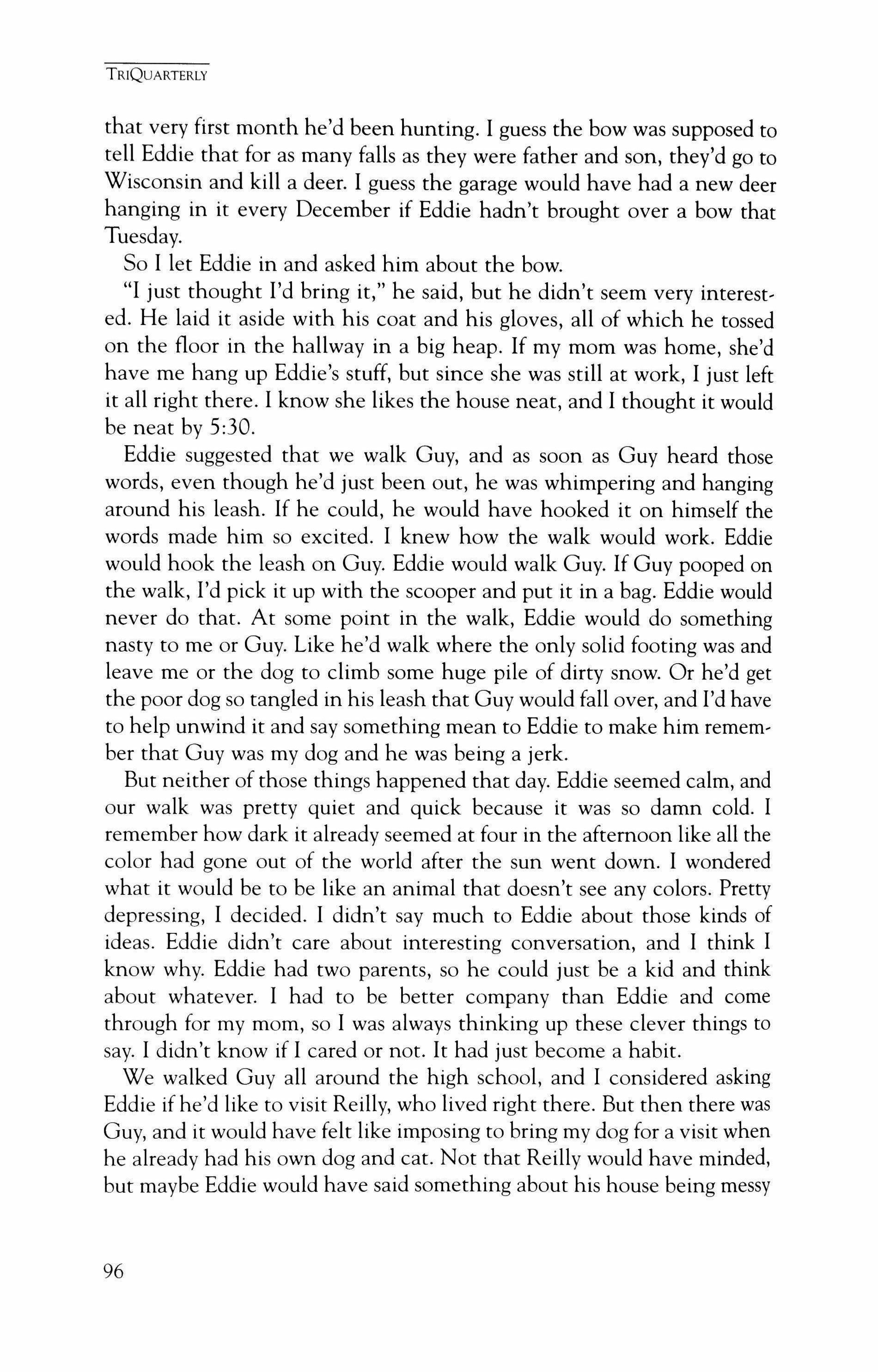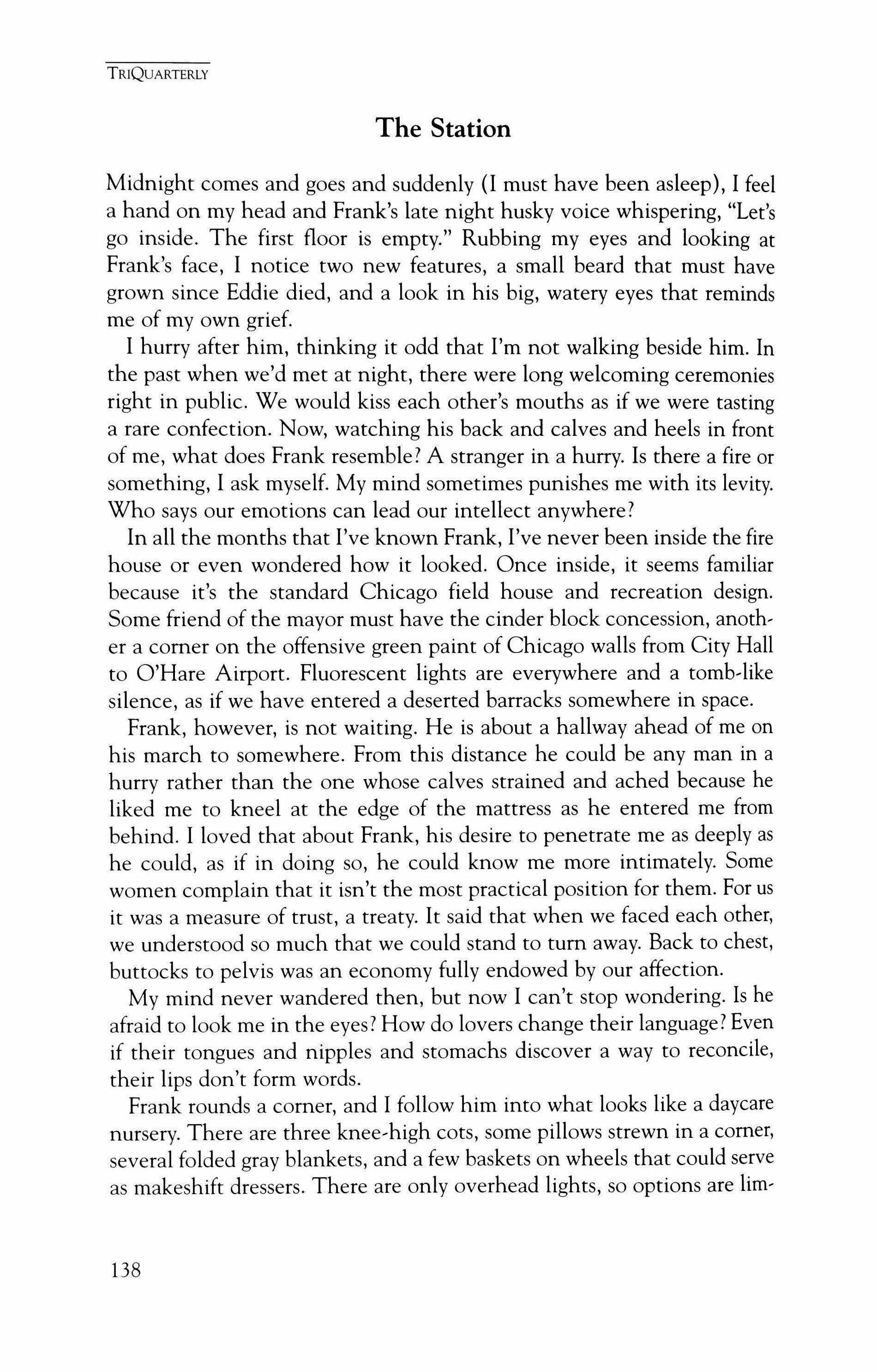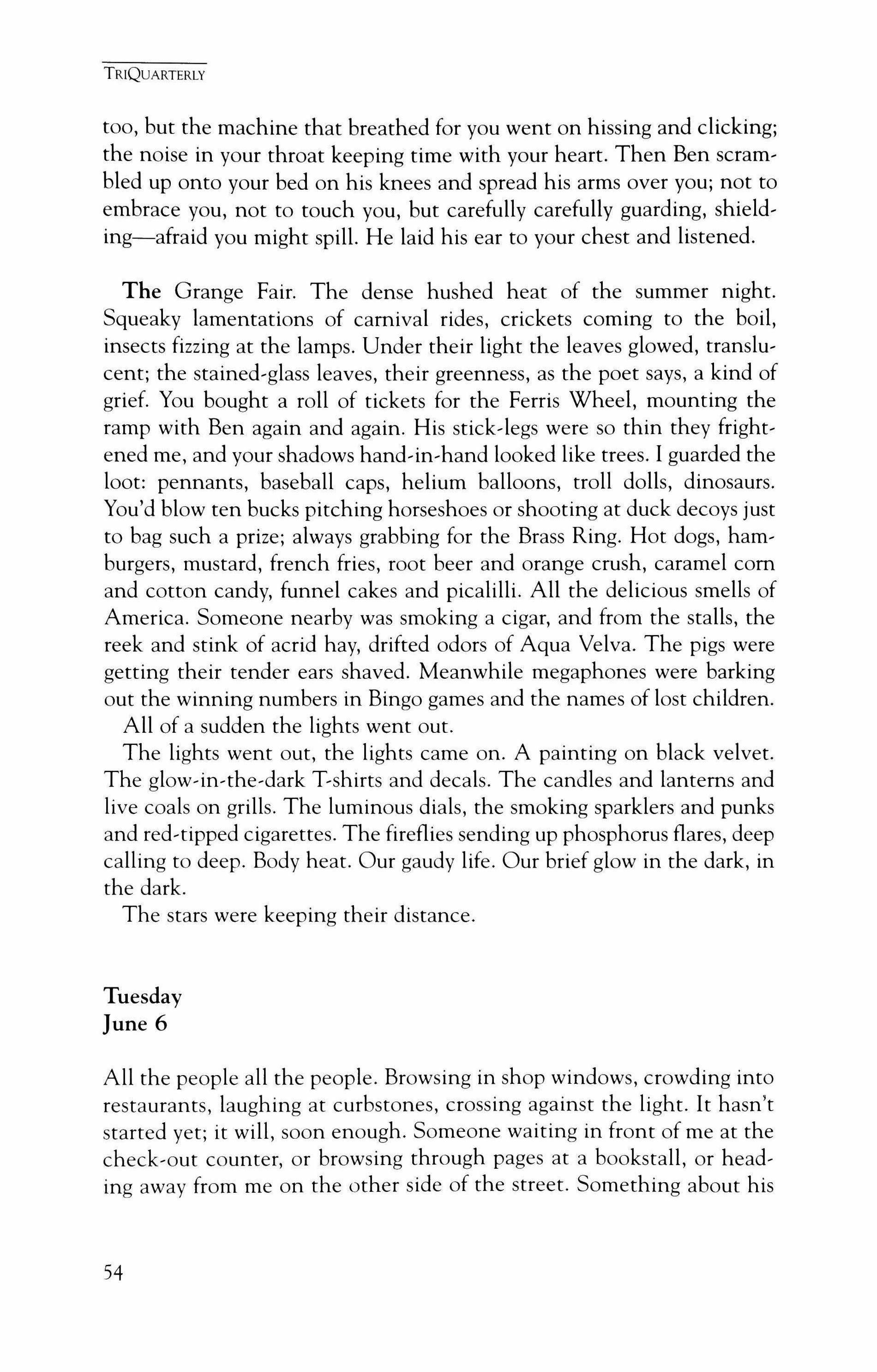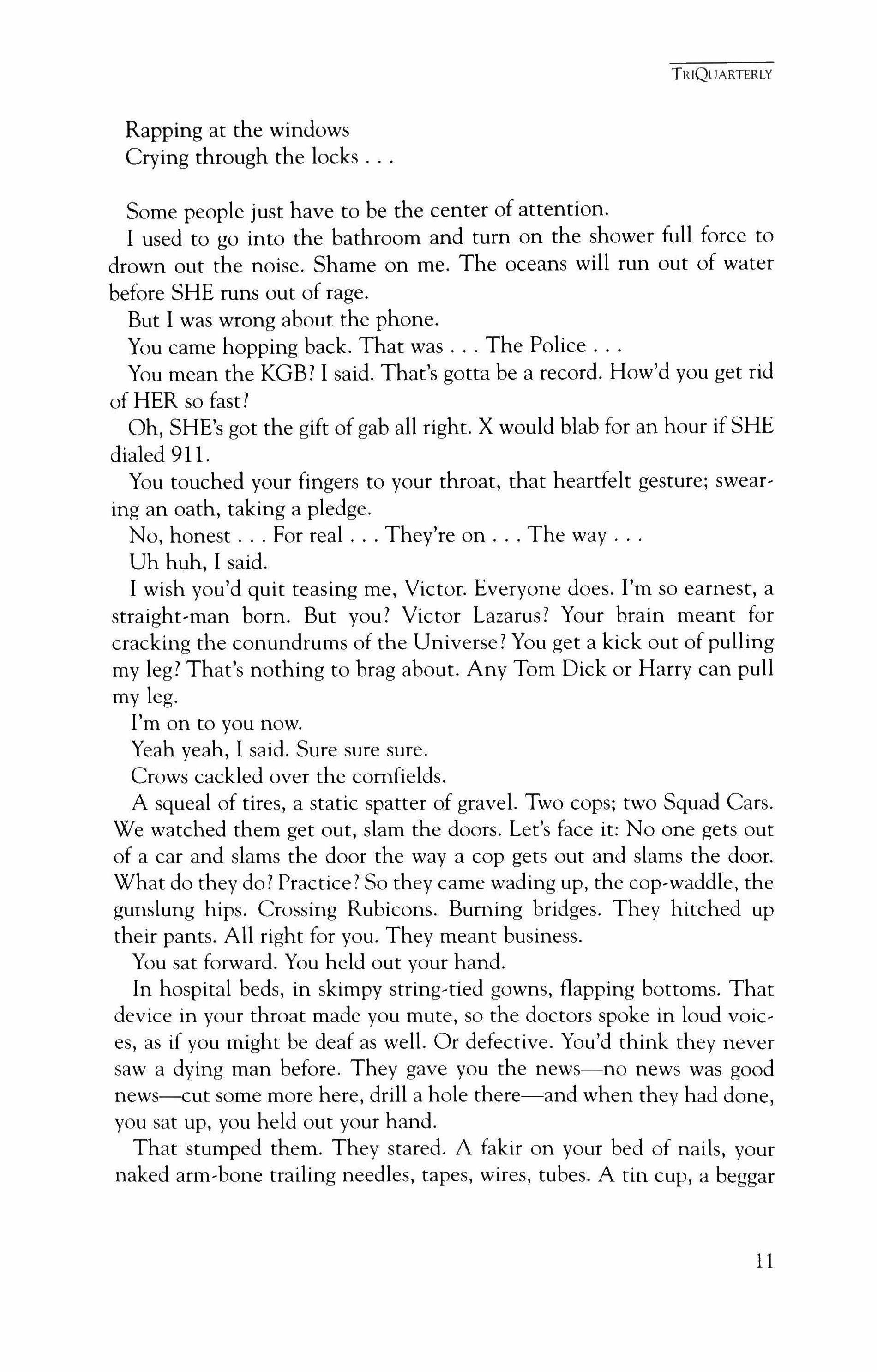 Copyright © 1999 by TriQuarterly. No part of this volume may be reproduced in any manner without written permission. The views expressed in this magazine are to be attributed to the writers, not the editors or sponsors. Printed in the United States of America by Thomson-Shore, Inc.; typeset by TriQuarterly. ISSN: 0041-3097.