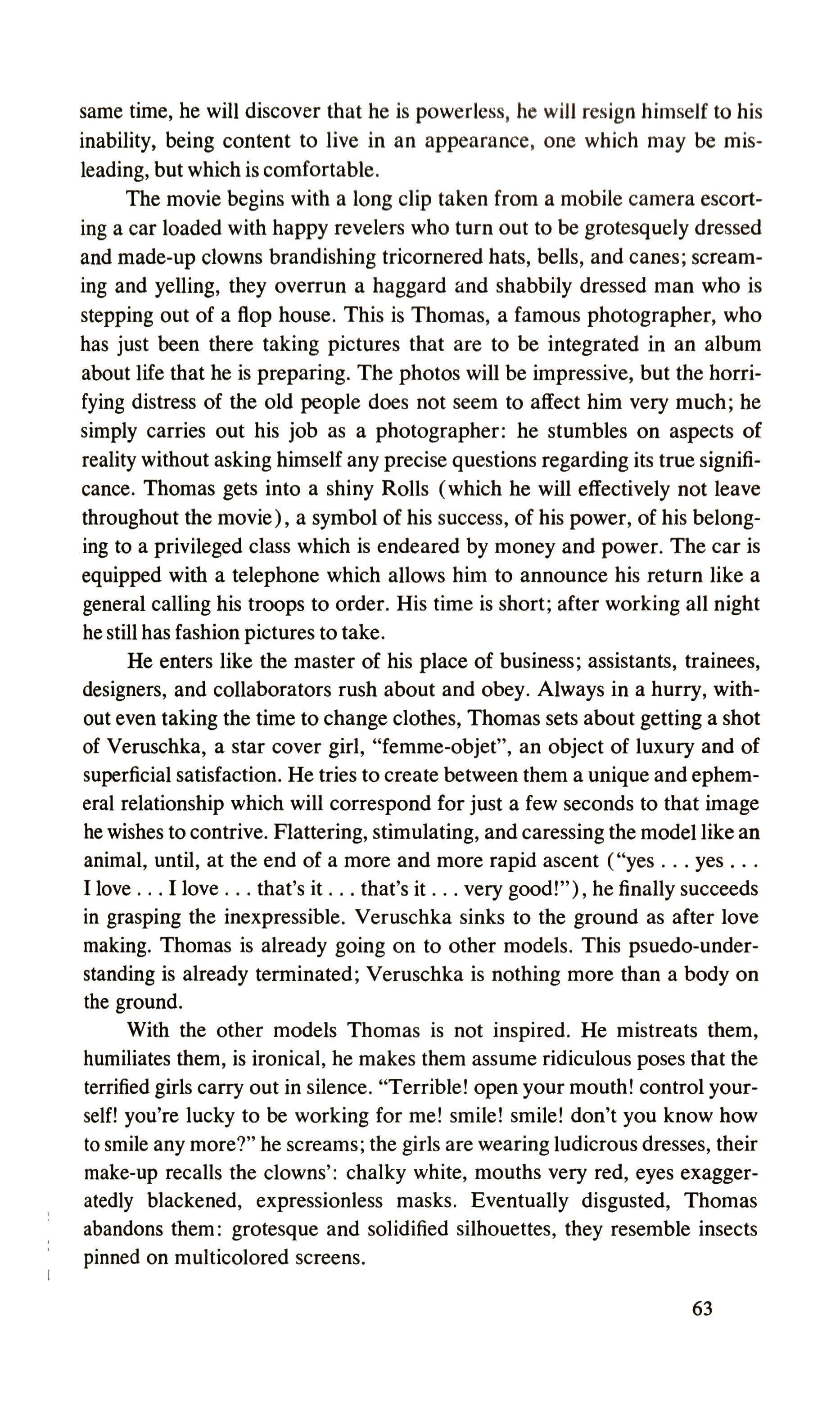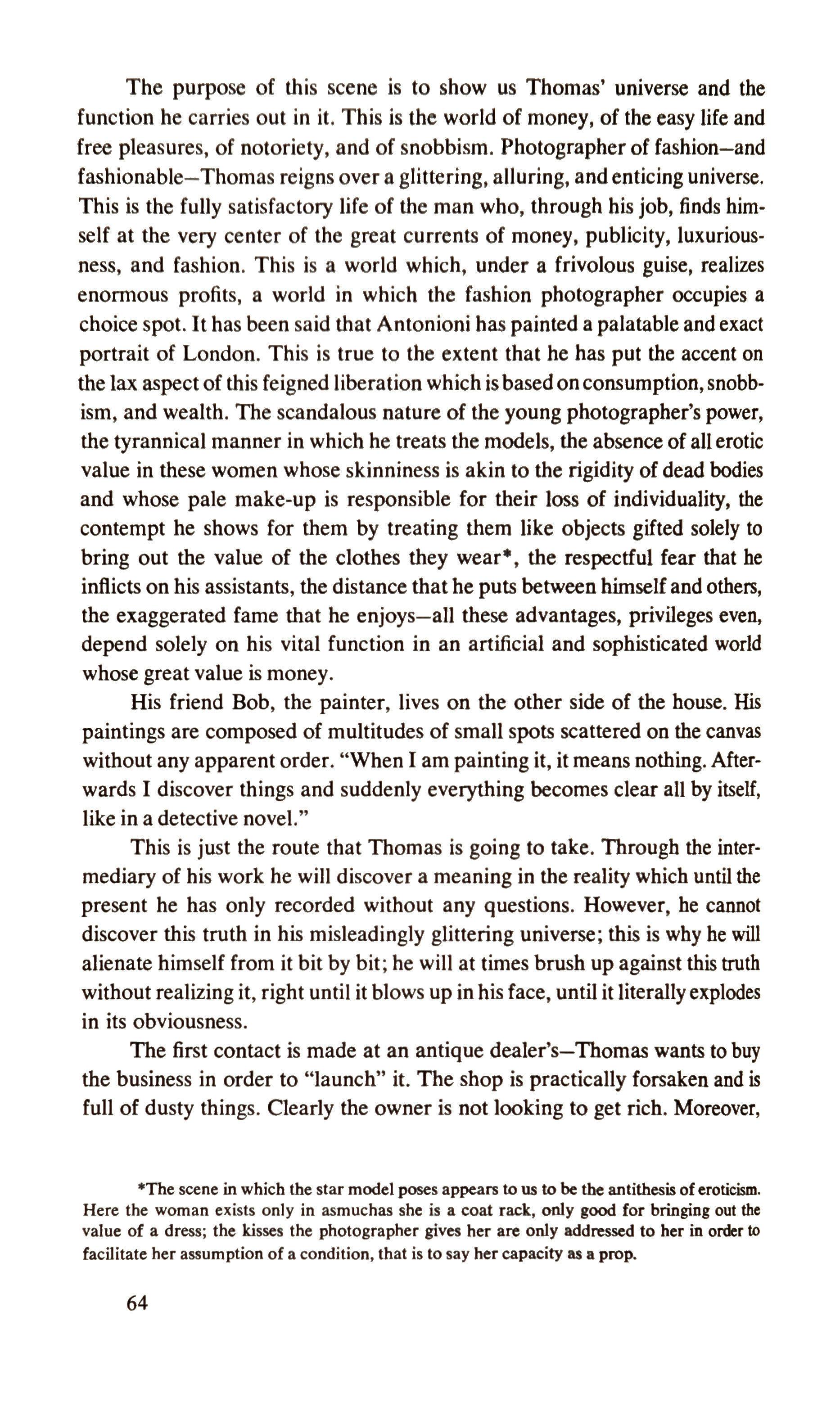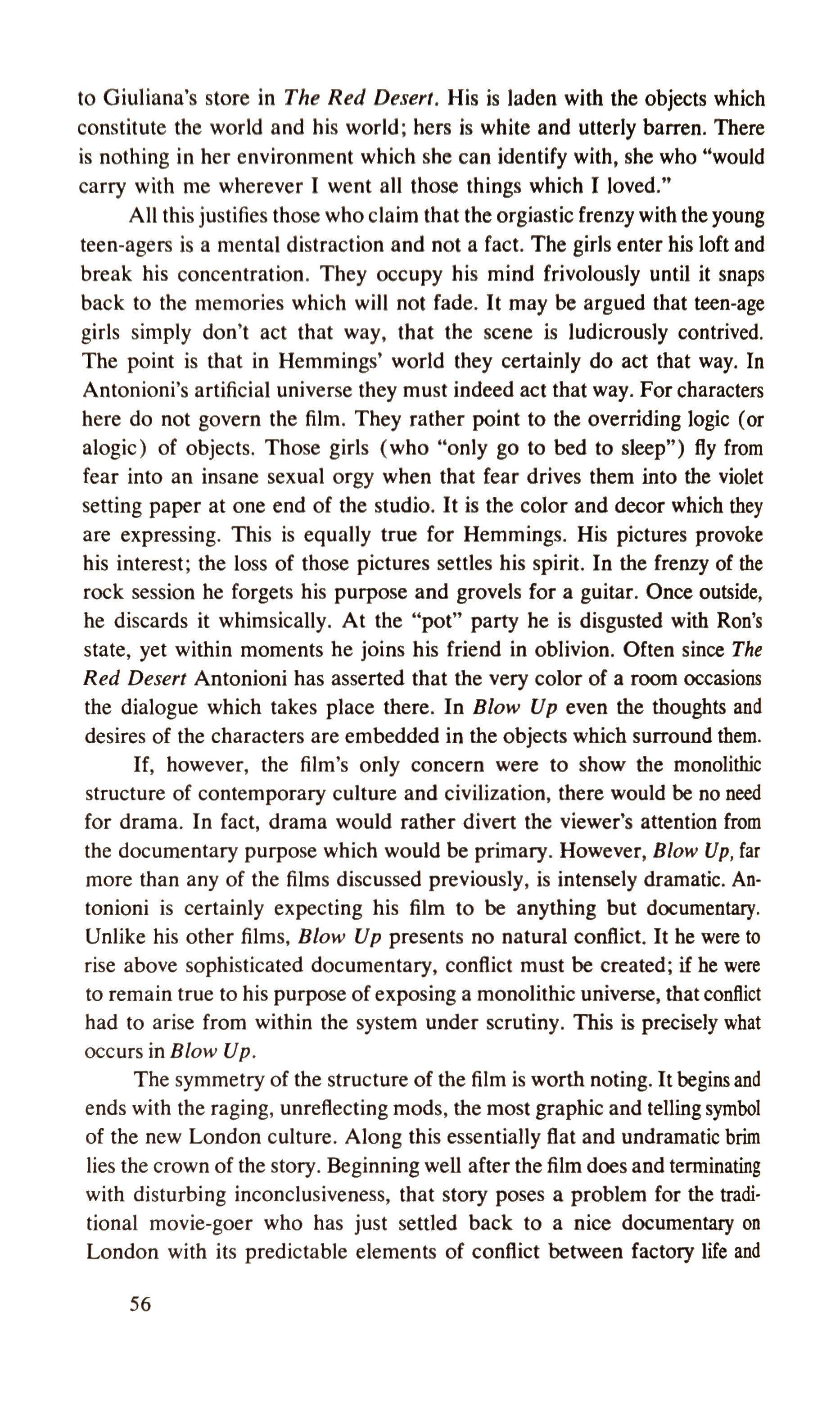 The stature of objects in Antonioni's films 40 On Blow-up 62,JJ(