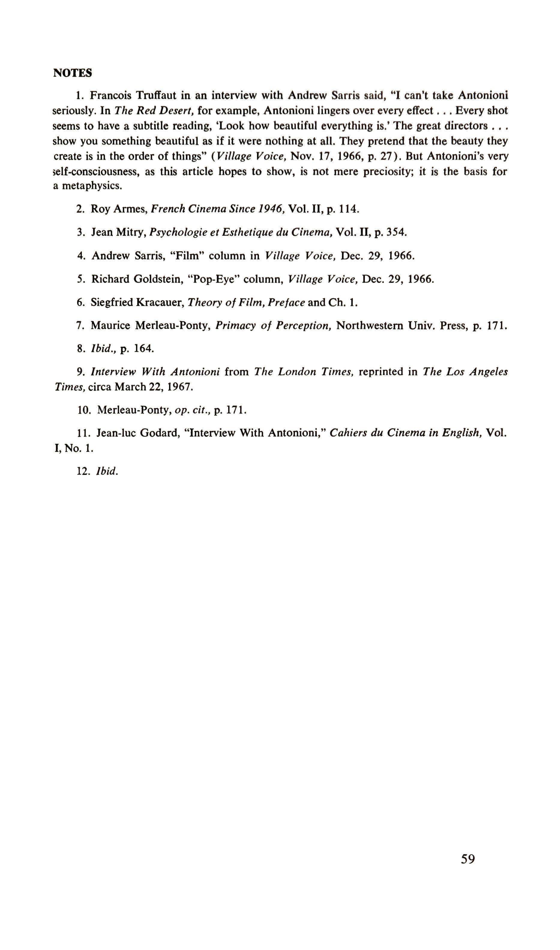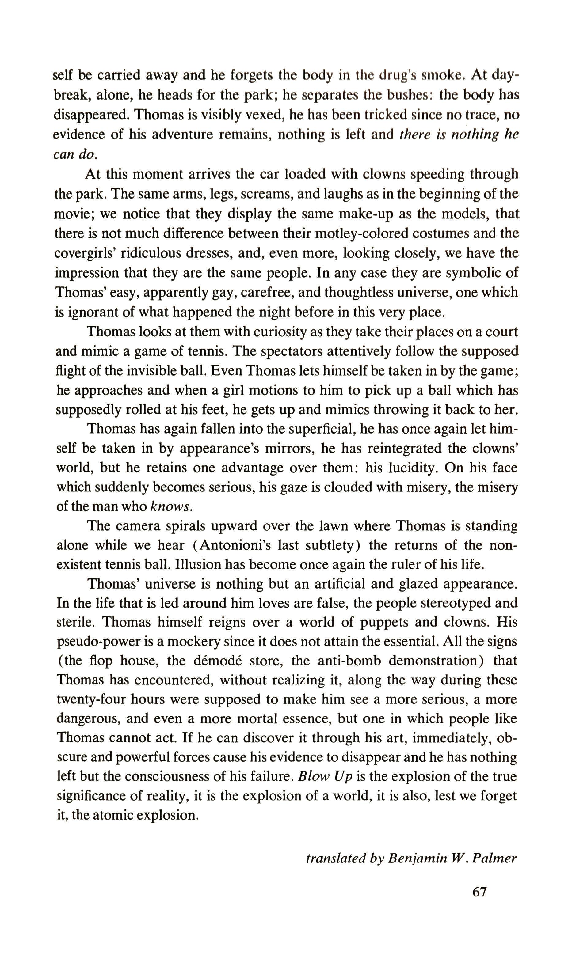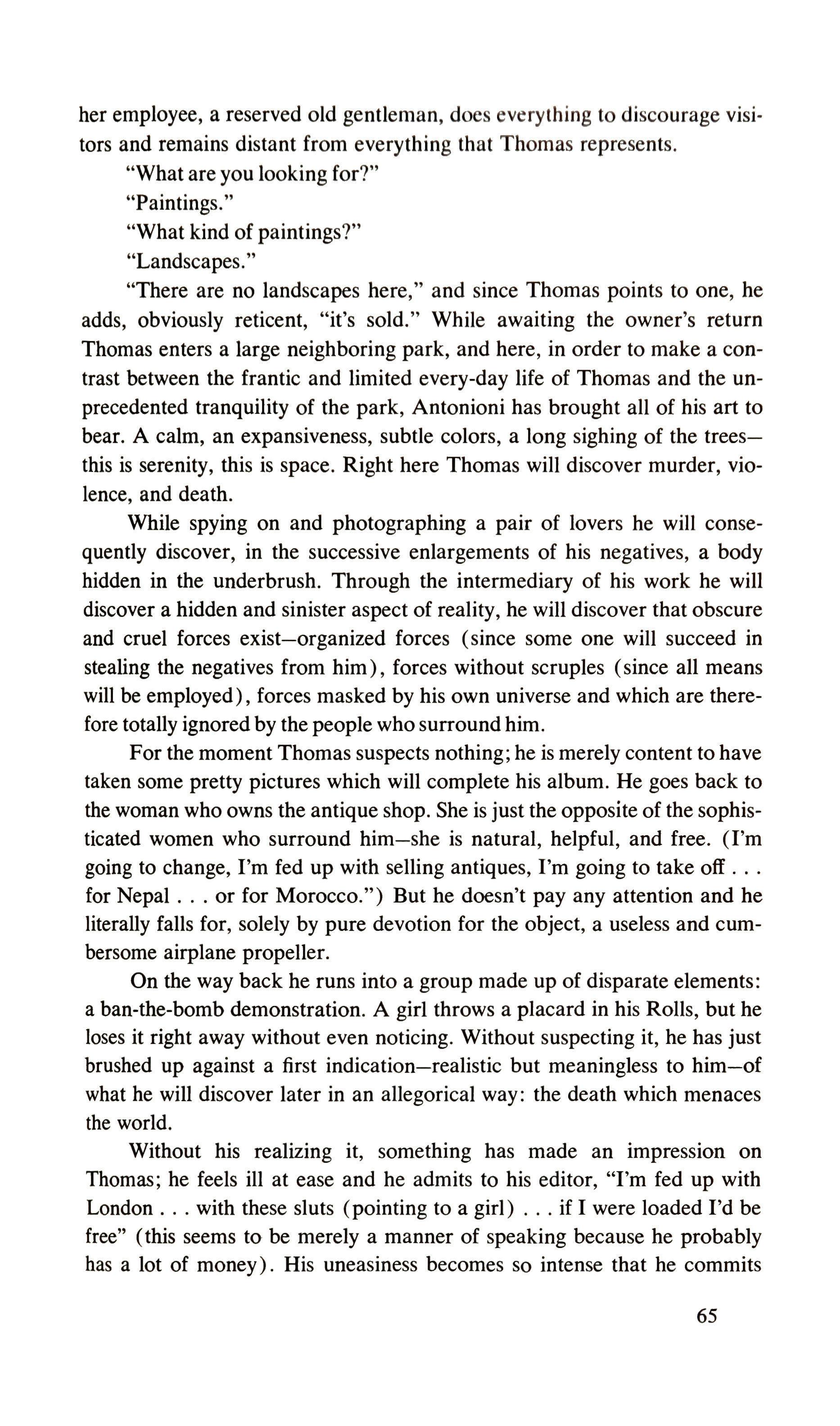 The stature of objects in Antonioni's films 40 On Blow-up 62,JJ(