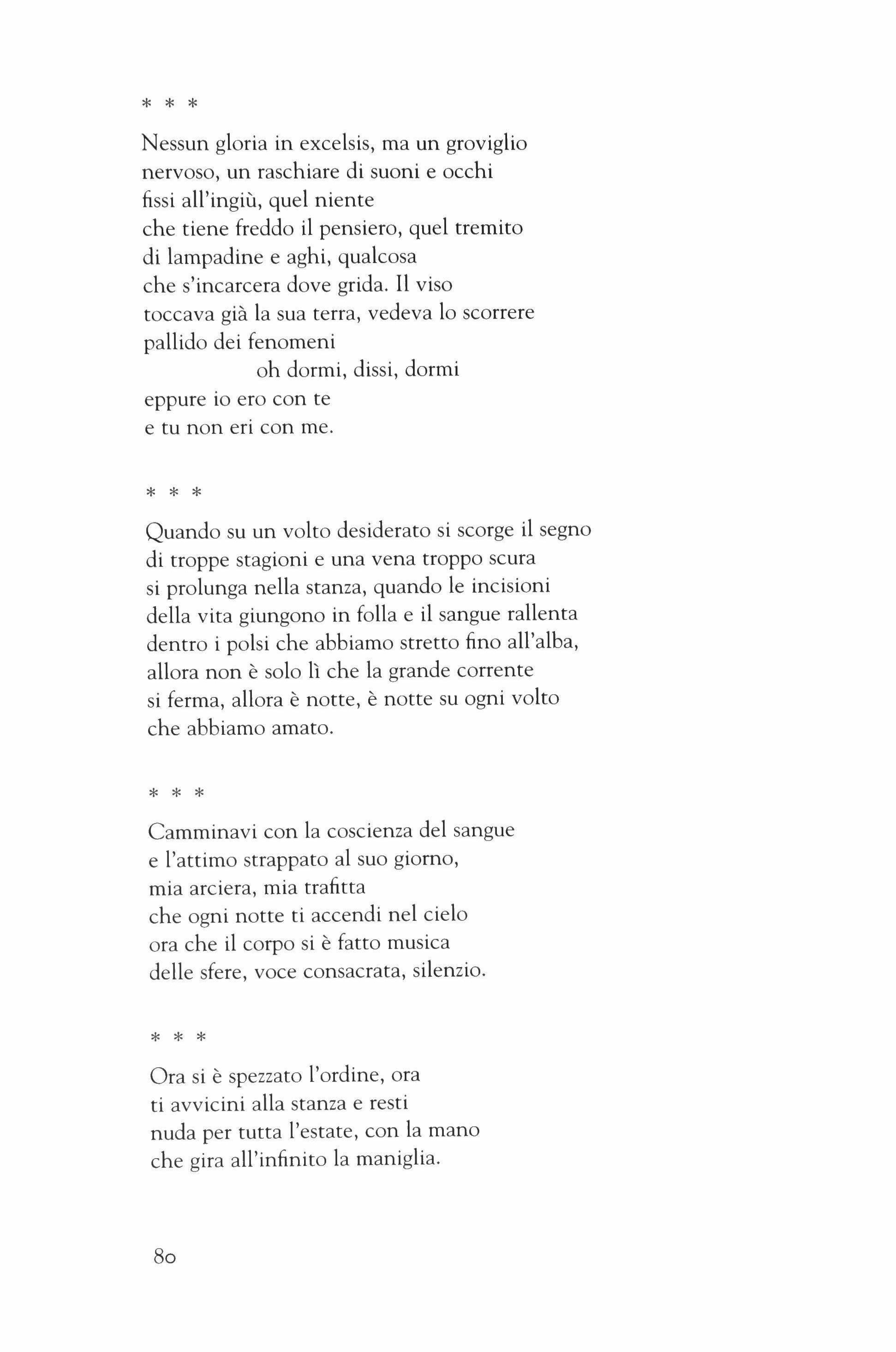 venne a mancarrni il respire aurorale che trapassasse a miglior mattinonon difetto l'istante di una morte gia risolta -esitante di vene ascese interludi-fulminea ed io vissi it nulla remoto-arpa millenaria per cui ero stata suono luce e tenue astrazione immortale-