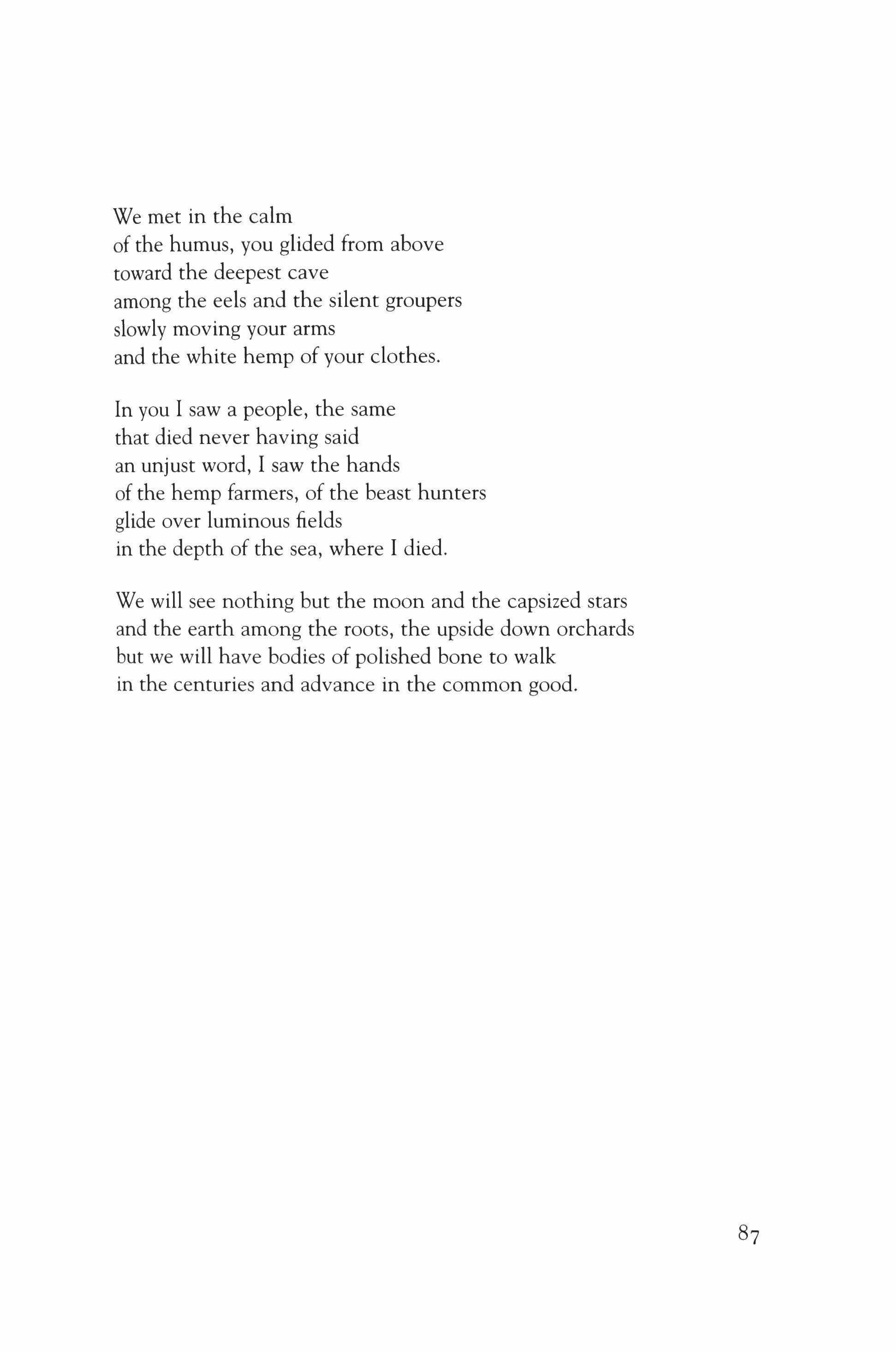 Left of her, Paula, were the eyes black like black pearls, and the festive colors, like of you all the words are left lined up like a heavenly convoy, trafficking in good harvests for the living, and for their assigned time.