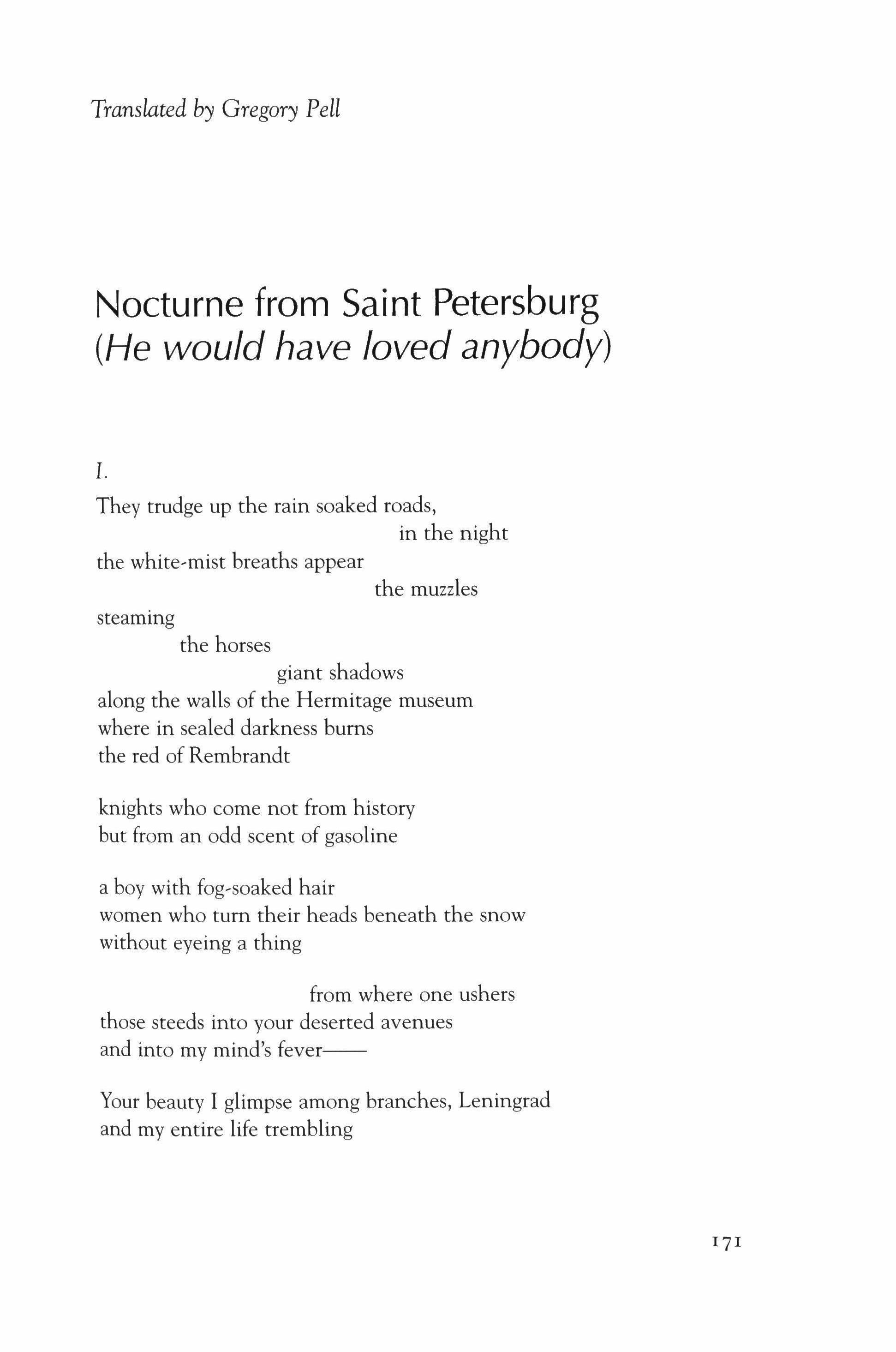 the auroral breath, which sweeps through the best of mornings, ran out on mebut that instant of a long-accepted death didn't fail -a vein of hesitation climbing interludes-lightning-quick and i lived the remote nothing-millennial harp which turned me into sound, light, and tenuous immortal abstractionthus came the dawn -a small deed, easy for god and for posterity