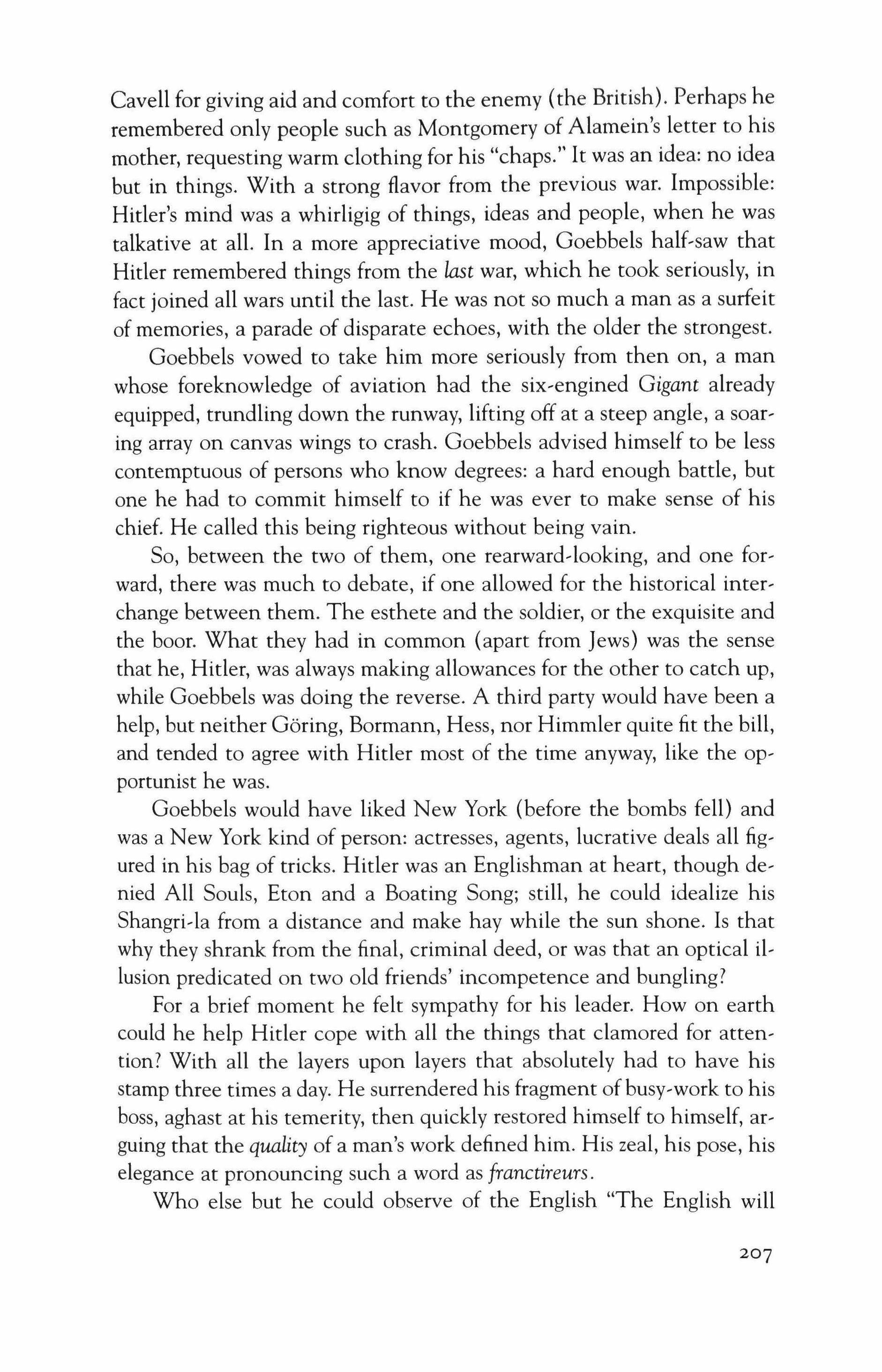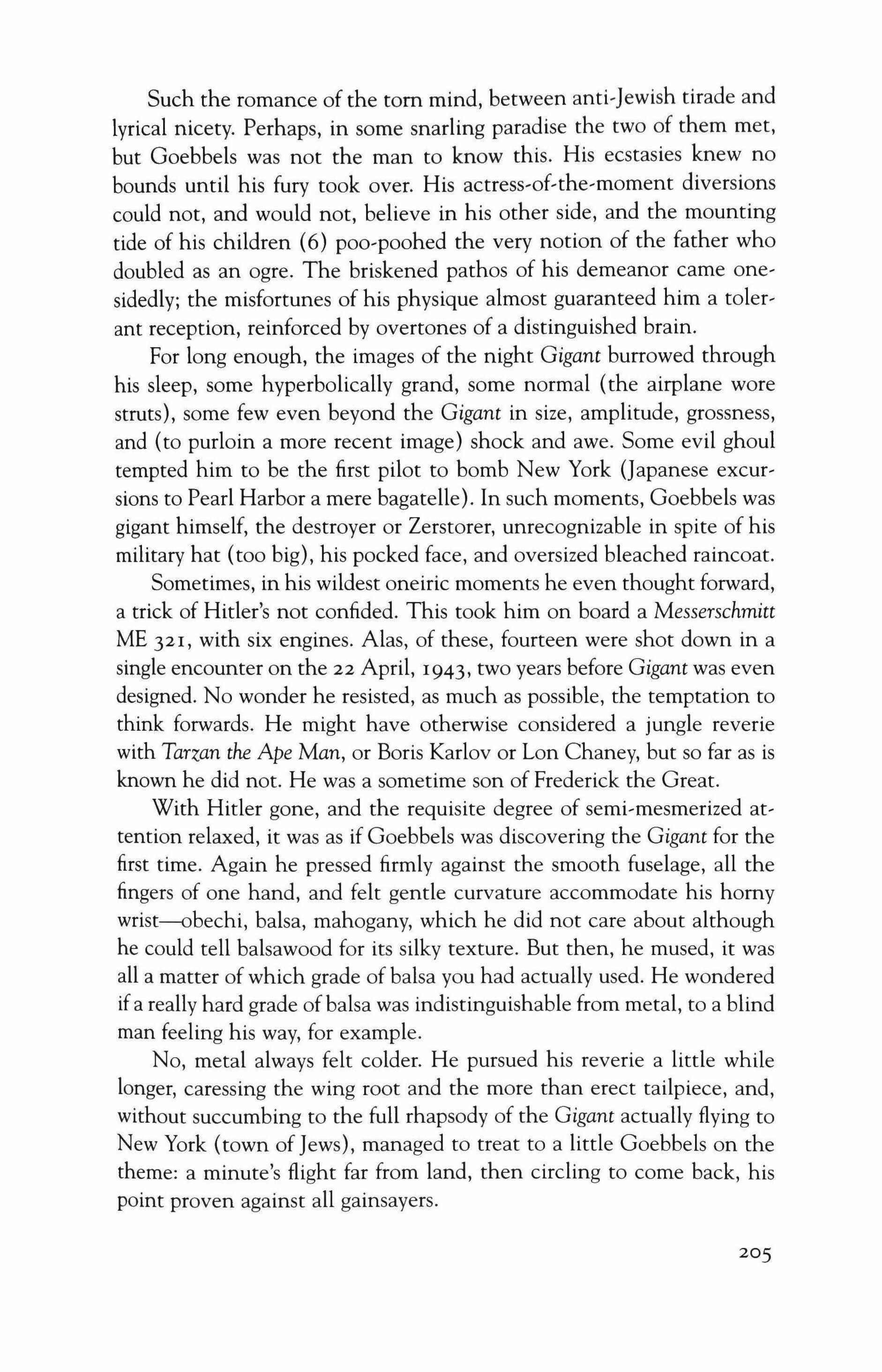 Poems punctuate the flow of stories and essays with injections of beauty and to-the-pointness. Barbara Ras, fluent in our species's contrariness and earth's resplendence, takes aim at our delusions in "Nothing Was Ever Better Than Before." Cristina Garda, revered for her inventive, culturally rich fiction, performs a stunning feat of distillation in her poem, "Twenty-nine Palms." Diane Ackerman brings overlooked aspects of nature to the fore in unexpected and striking ways in "Goldenrod" and "In Palm Beach." Laurie Sheck writes from the point of view of the "monster" in Mary Shelley's Frankenstein, imagining that the monster is alive and busy studying humankind. While poet Sheck humanizes an imaginary, misunderstood monster who has become part of our collective consciousness, the incomparable and irrepressible storyteller and exuberant etymologist Paul West revisits a true-life monster in his audacious and devilish story, "Goebbels Aloft."