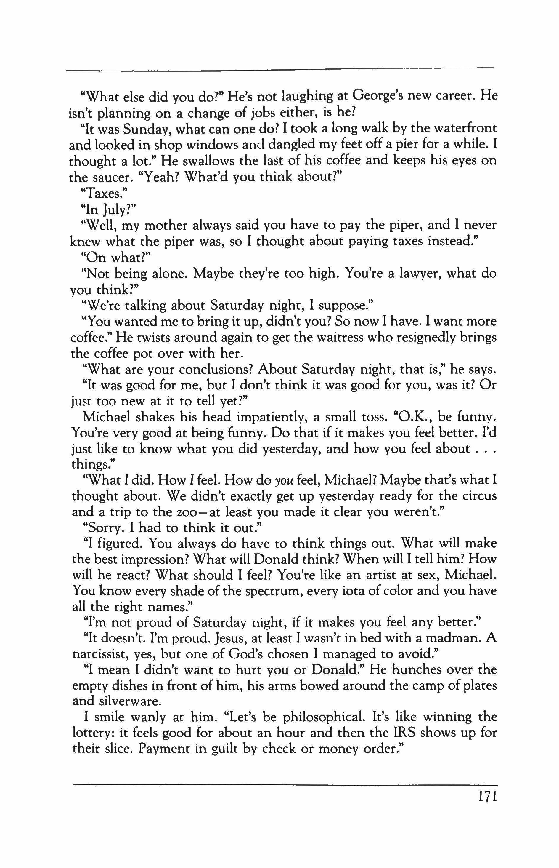 "Well!" Nicholson said, smiling again. I noticed that he had had his teeth capped. He looked fit, though tired. Probably it was only a hang, over. "Surely you would not contend-"