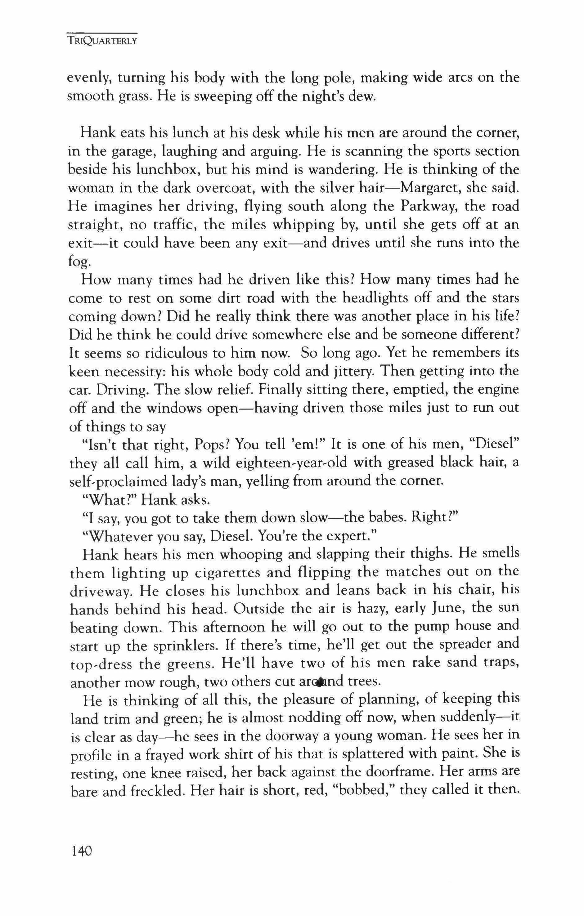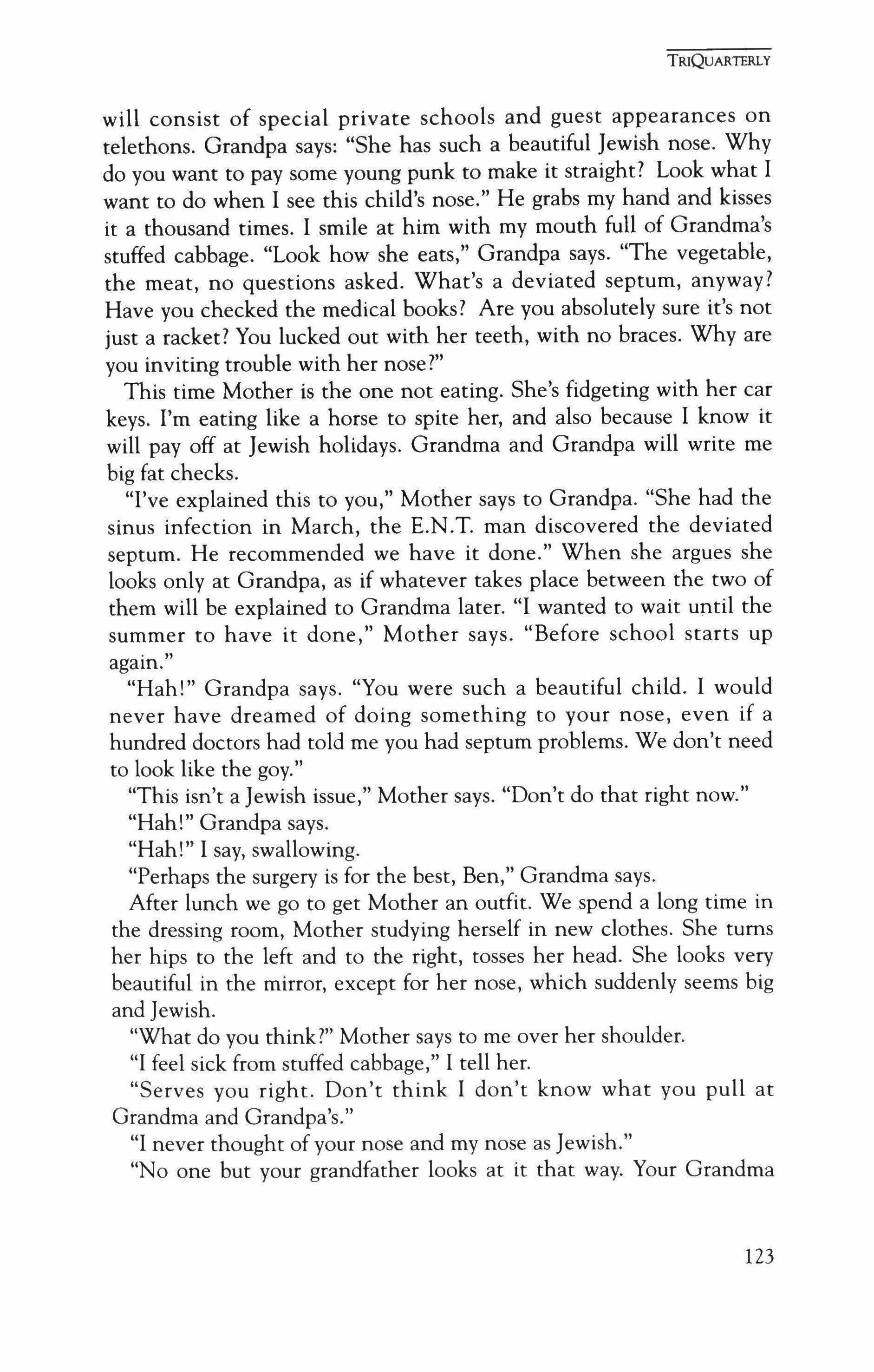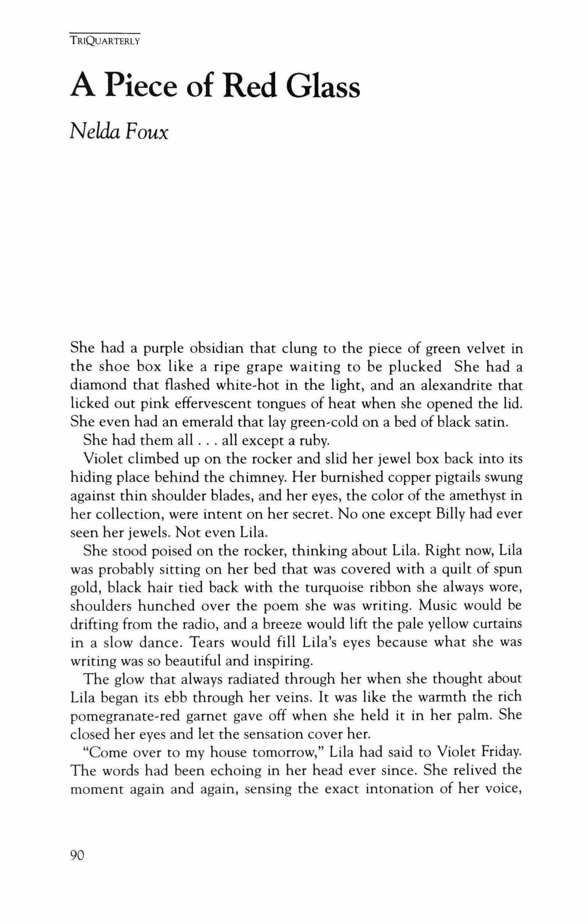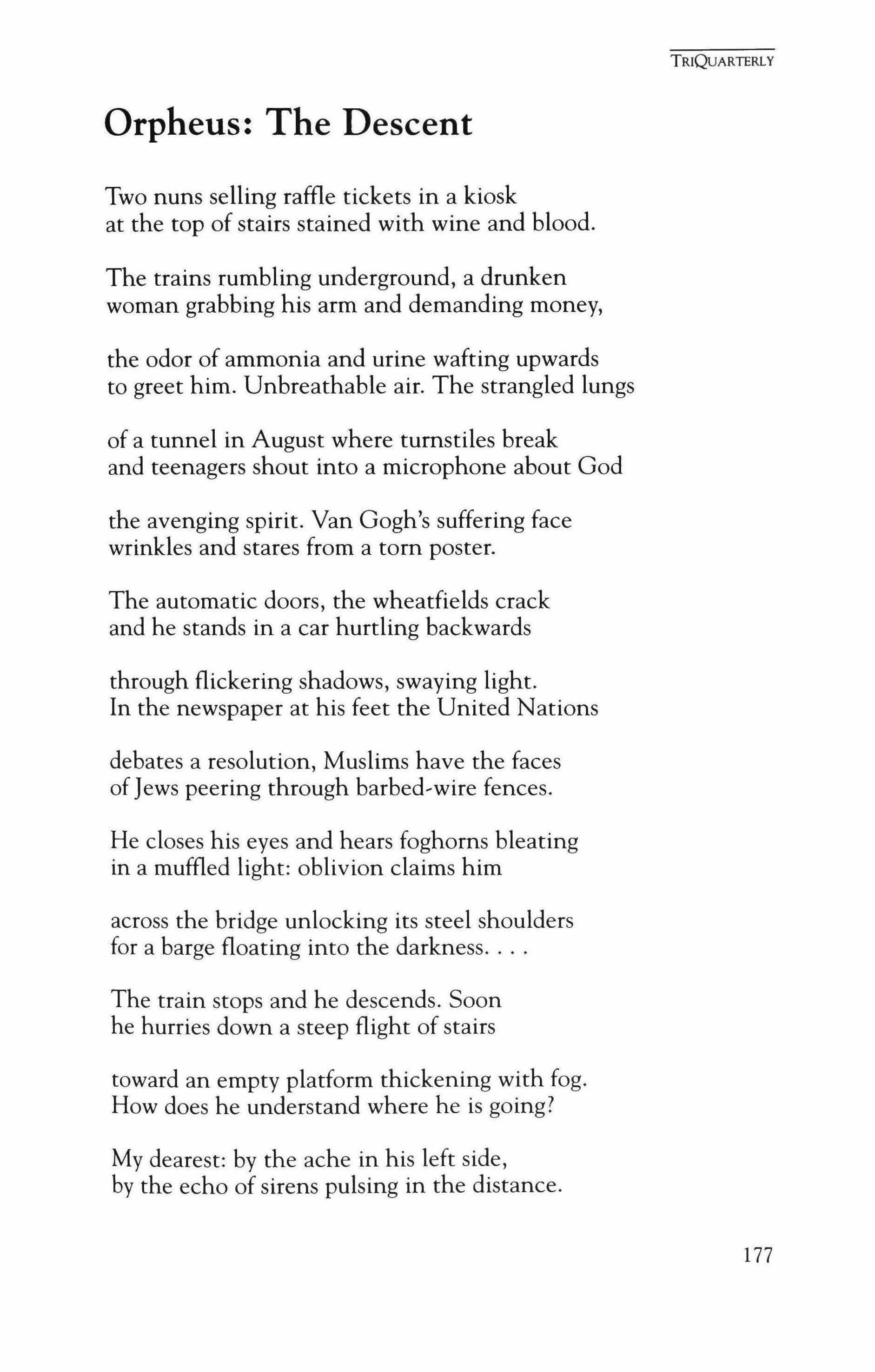 Publication of TriQuarterly is made possible in part by the donors of gifts and grants to the magazine. For their recent and continuing support, we are very pleased to thank the Illinois Arts Council, the Lannan Foundation, the National Endowment for the Arts, the Sara Lee Foundation, the Wendling Foundation, and individual donors. Major new marketing initiatives at TriQuarterly have been made possible by the Lila Wallace Reader's Digest Literary Publishers Marketing Development Program, funded through a grant to the Council of Literary Magazines and Presses.