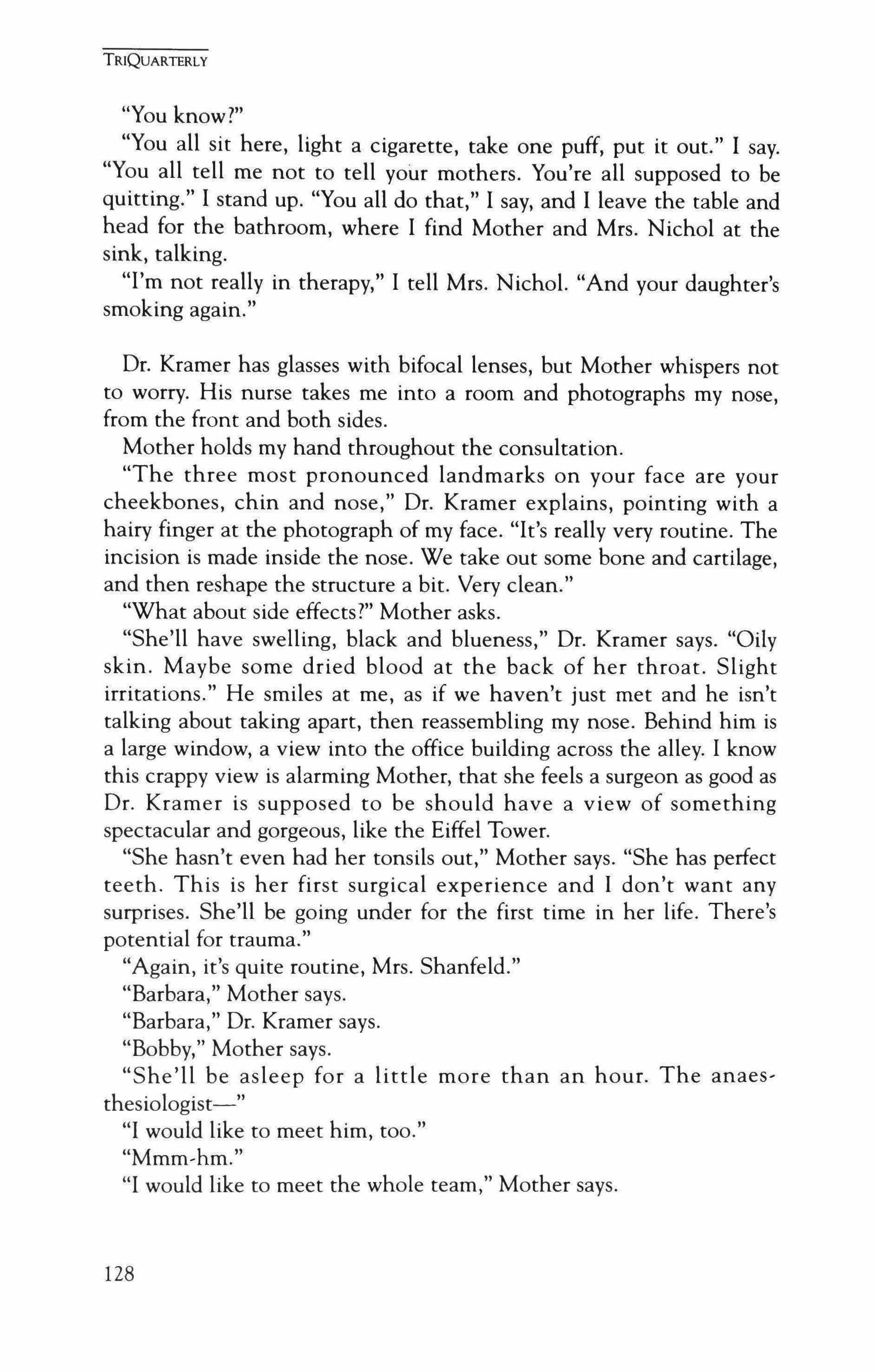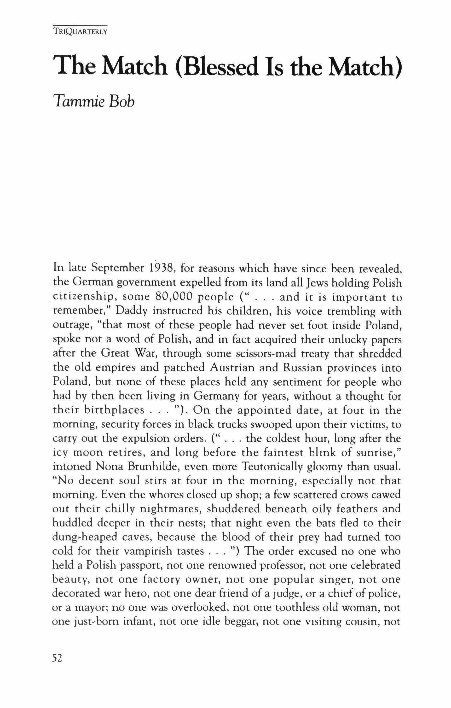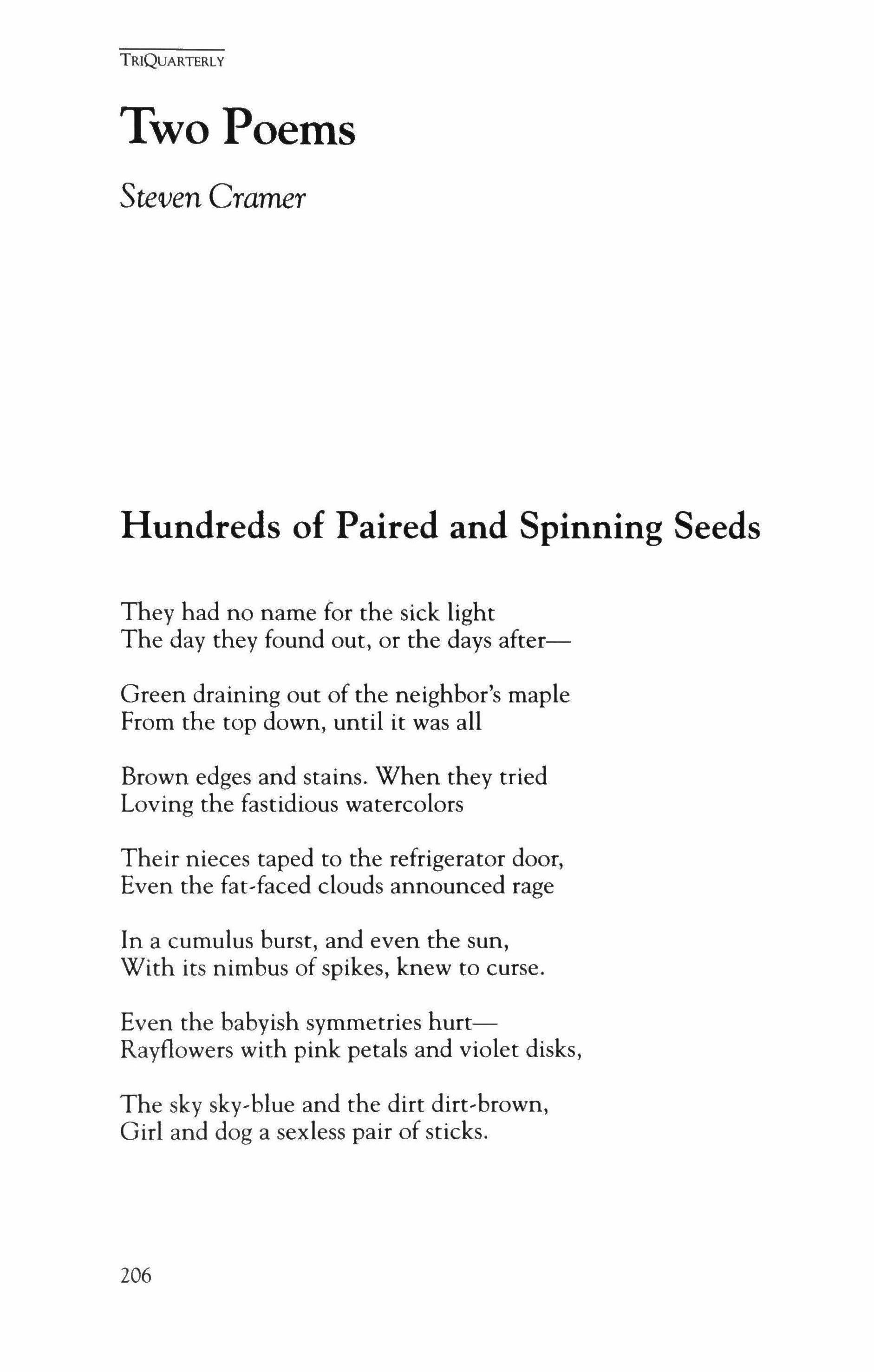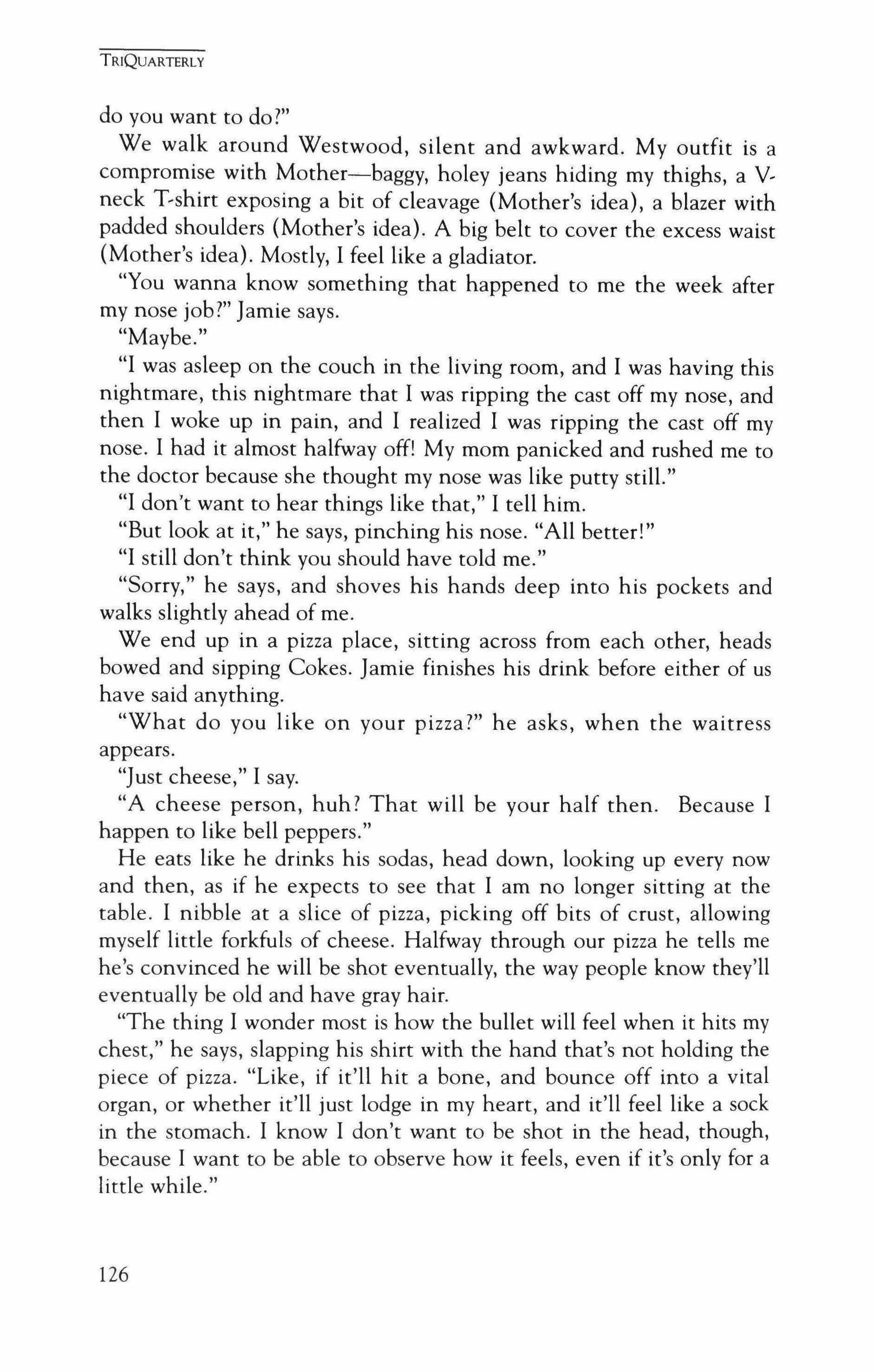 Publication of TriQuarterly is made possible in part by the donors of gifts and grants to the magazine. For their recent and continuing support, we are very pleased to thank the Illinois Arts Council, the Lannan Foundation, the National Endowment for the Arts, the Sara Lee Foundation, the Wendling Foundation, and individual donors. Major new marketing initiatives at TriQuarterly have been made possible by the Lila Wallace Reader's Digest Literary Publishers Marketing Development Program, funded through a grant to the Council of Literary Magazines and Presses.