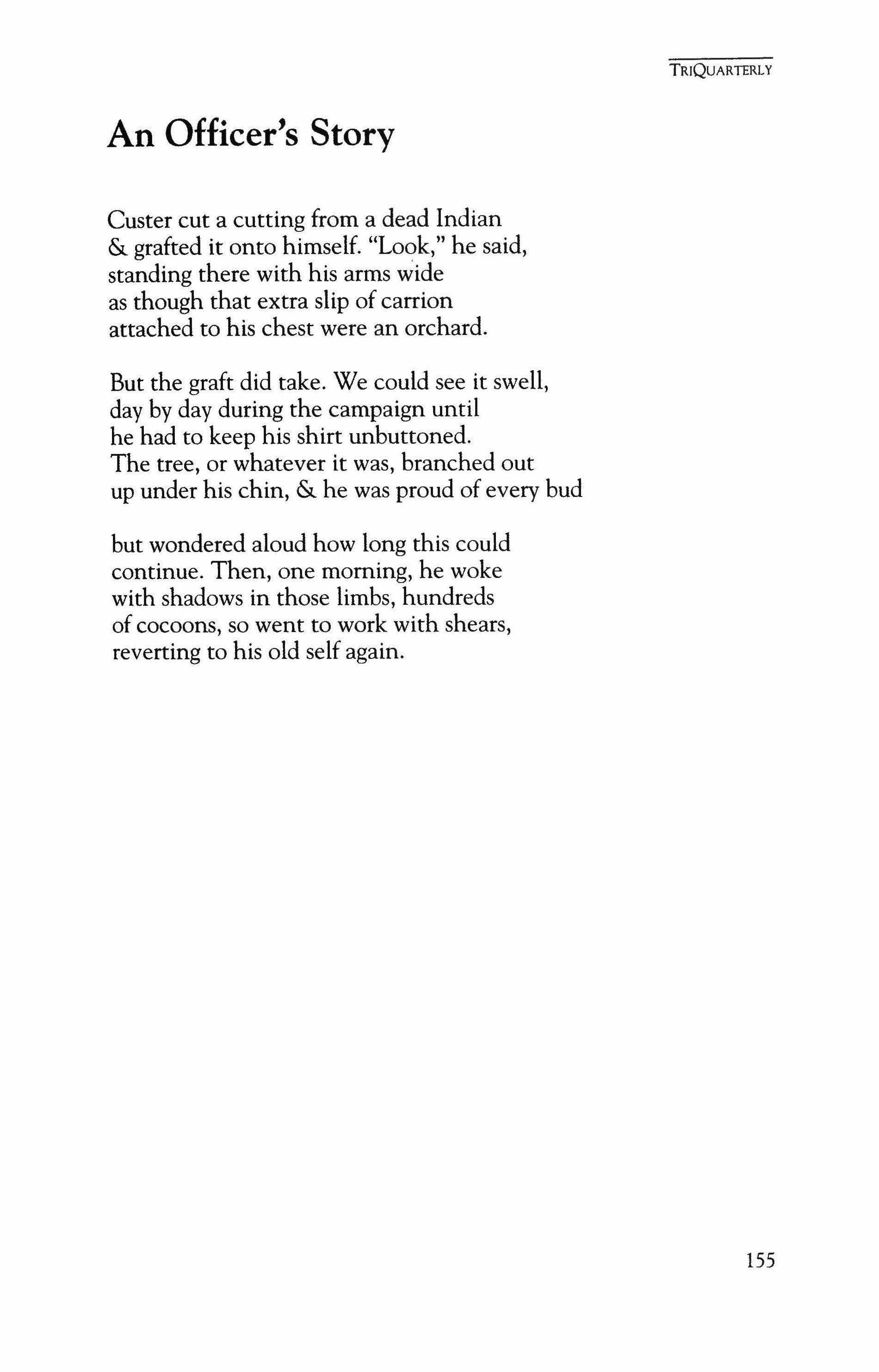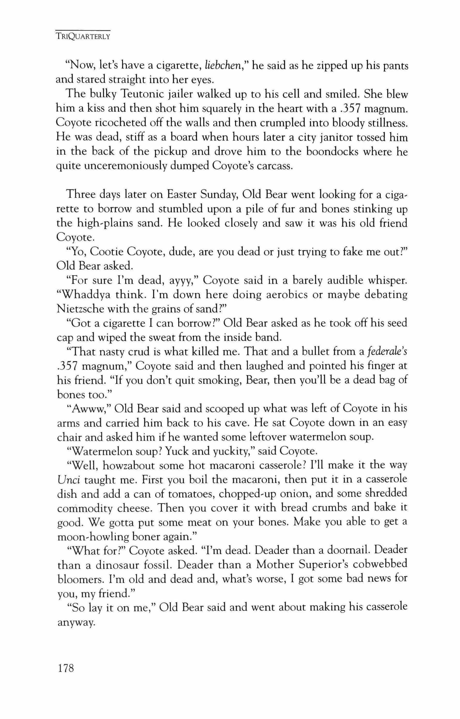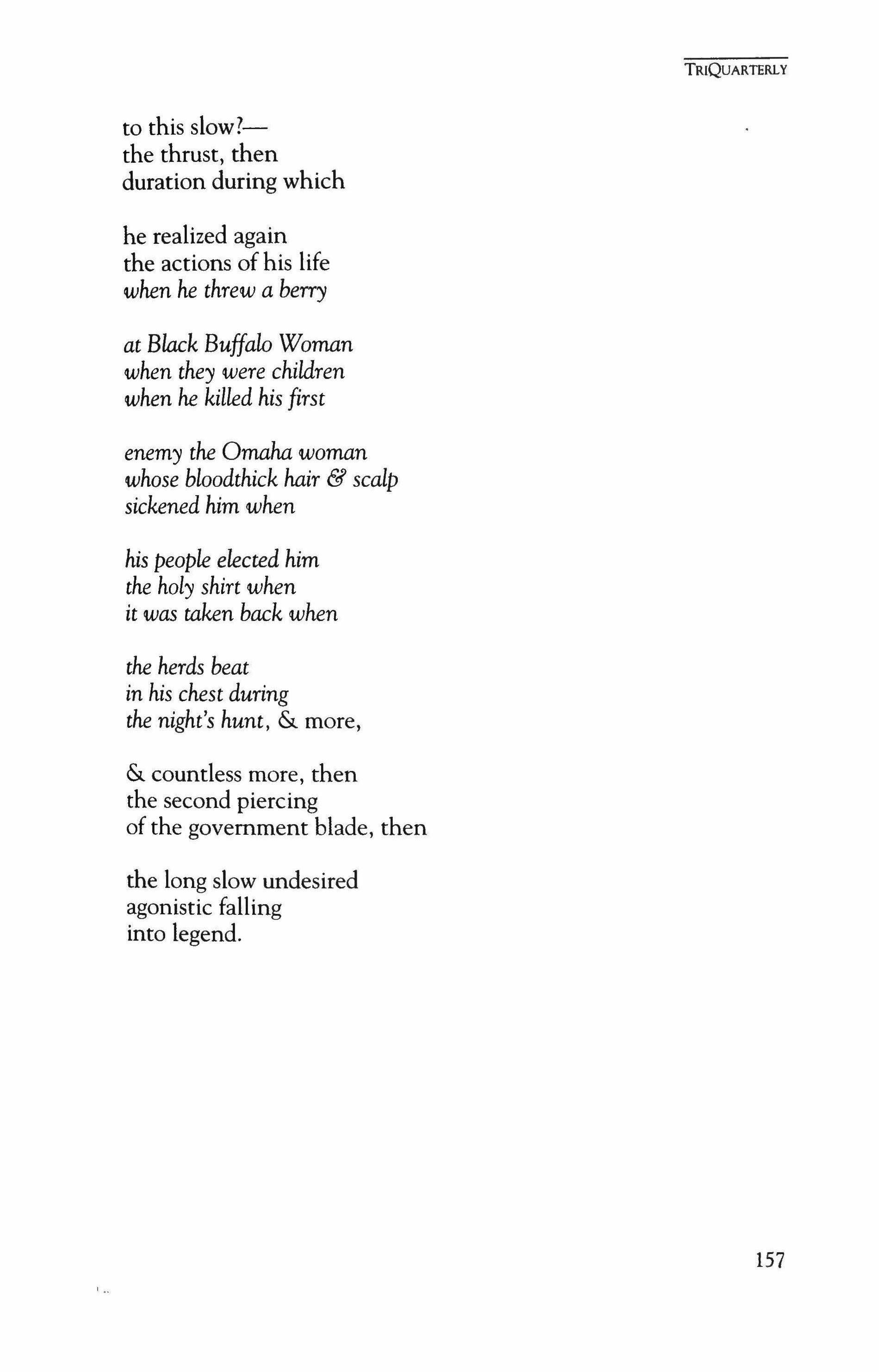 Publication of TriQuarterly is made possible in part by the donors of gifts and grants to the magazine. For their recent and continuing support, we are very pleased to thank the Illinois Arts Council, the Lannan Foundation, the John D. and Catherine T. MacArthur Foundation, the National Endowment for the Arts, the Sara Lee Foundation, the Wendling Foundation, and individual donors.