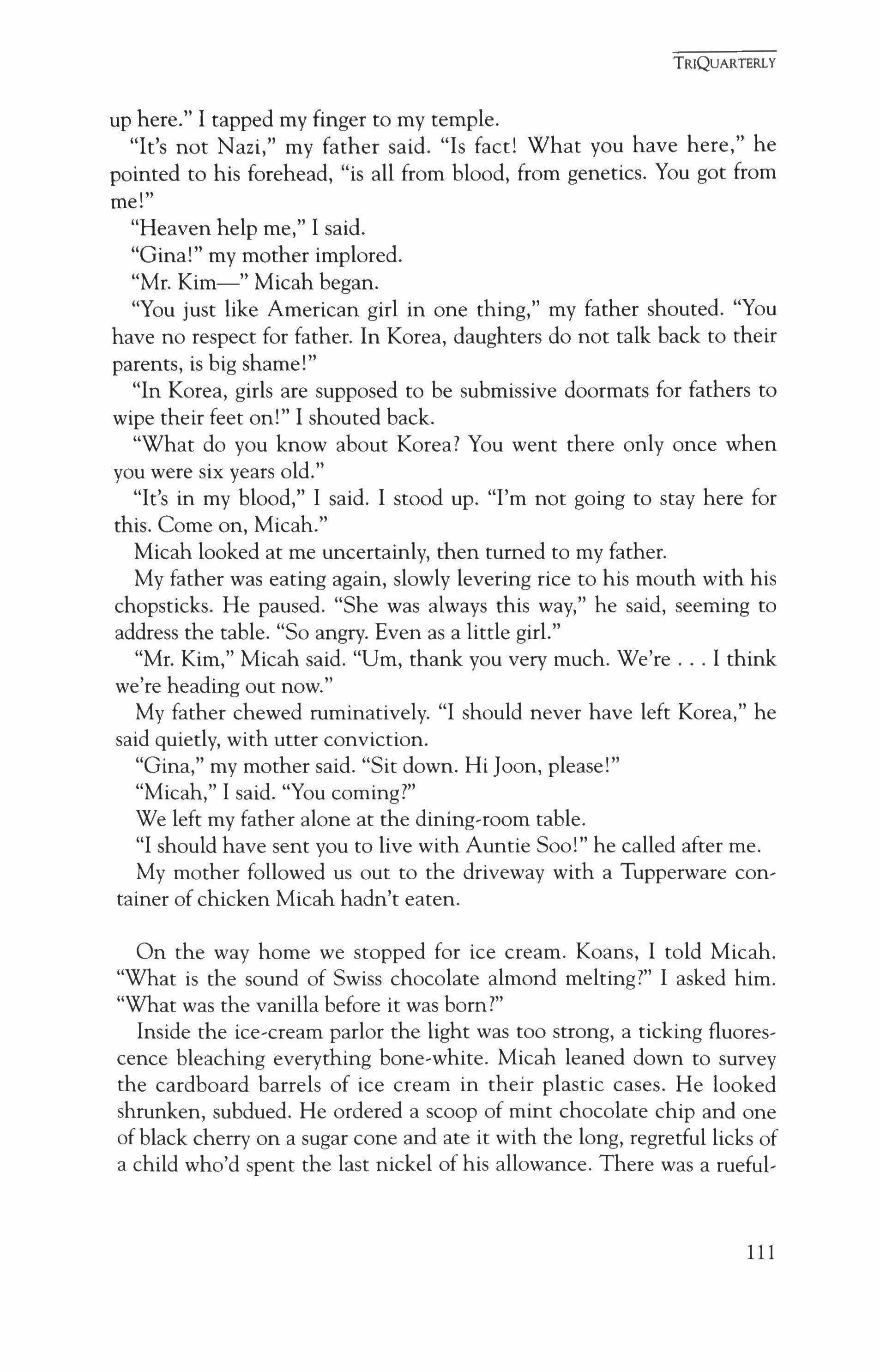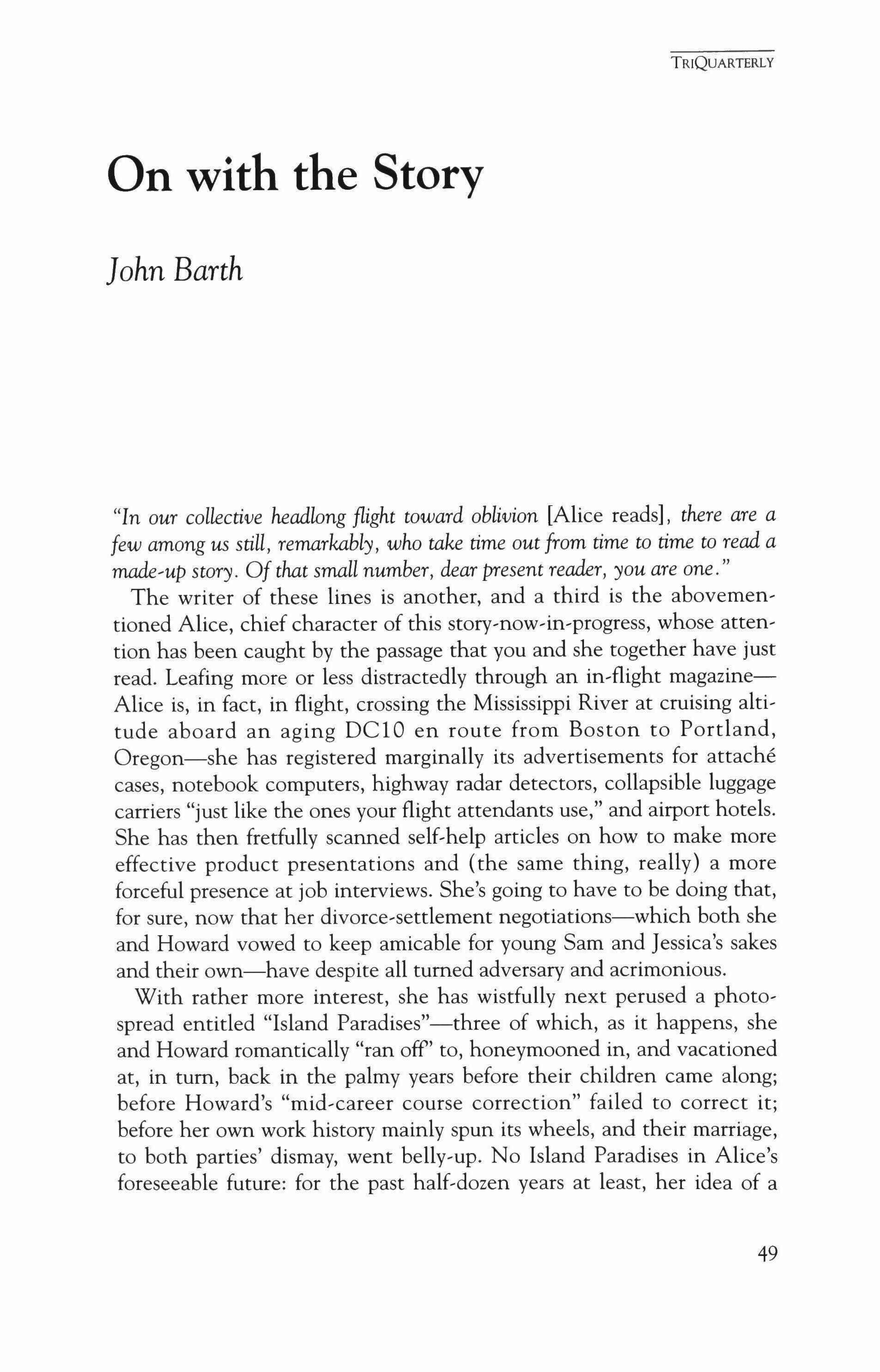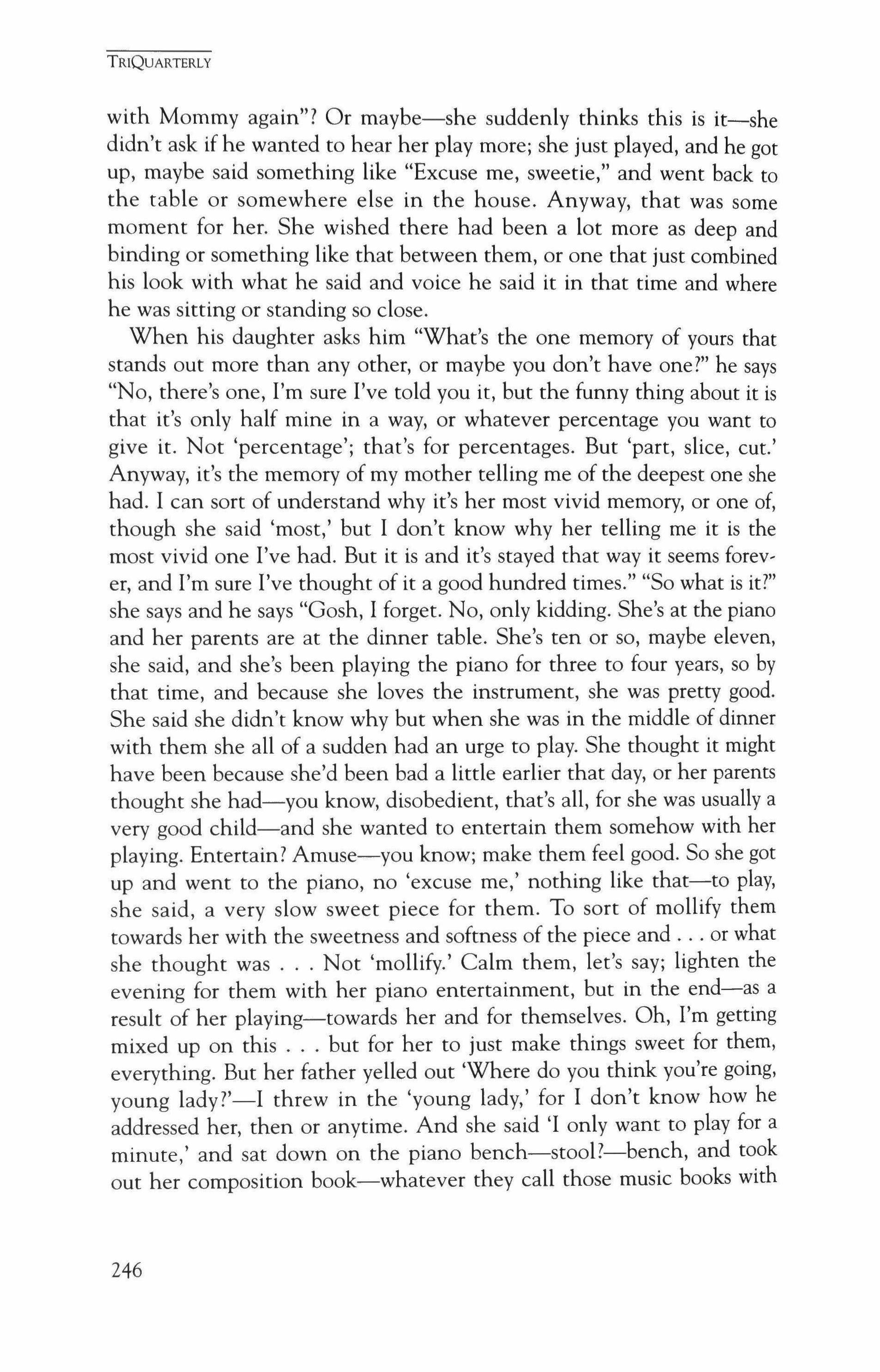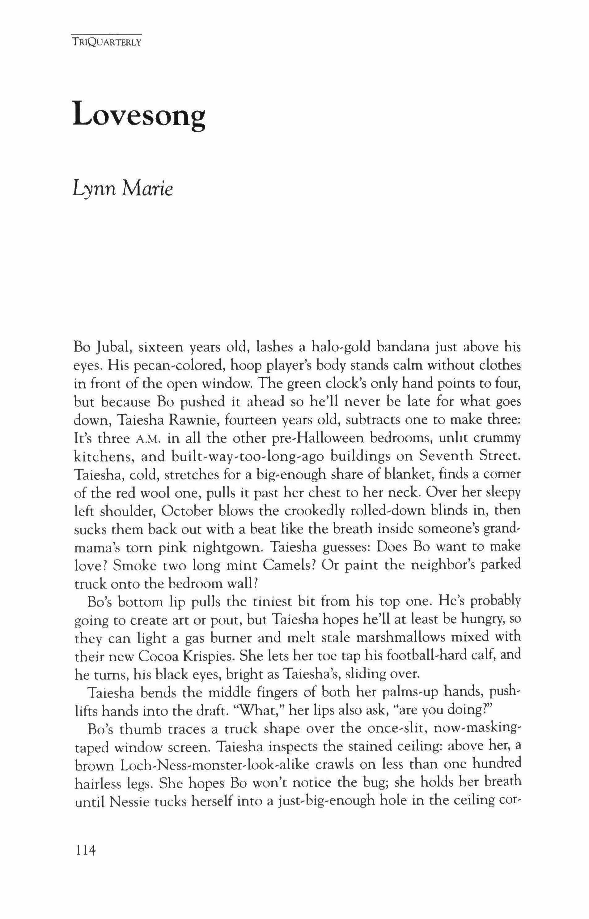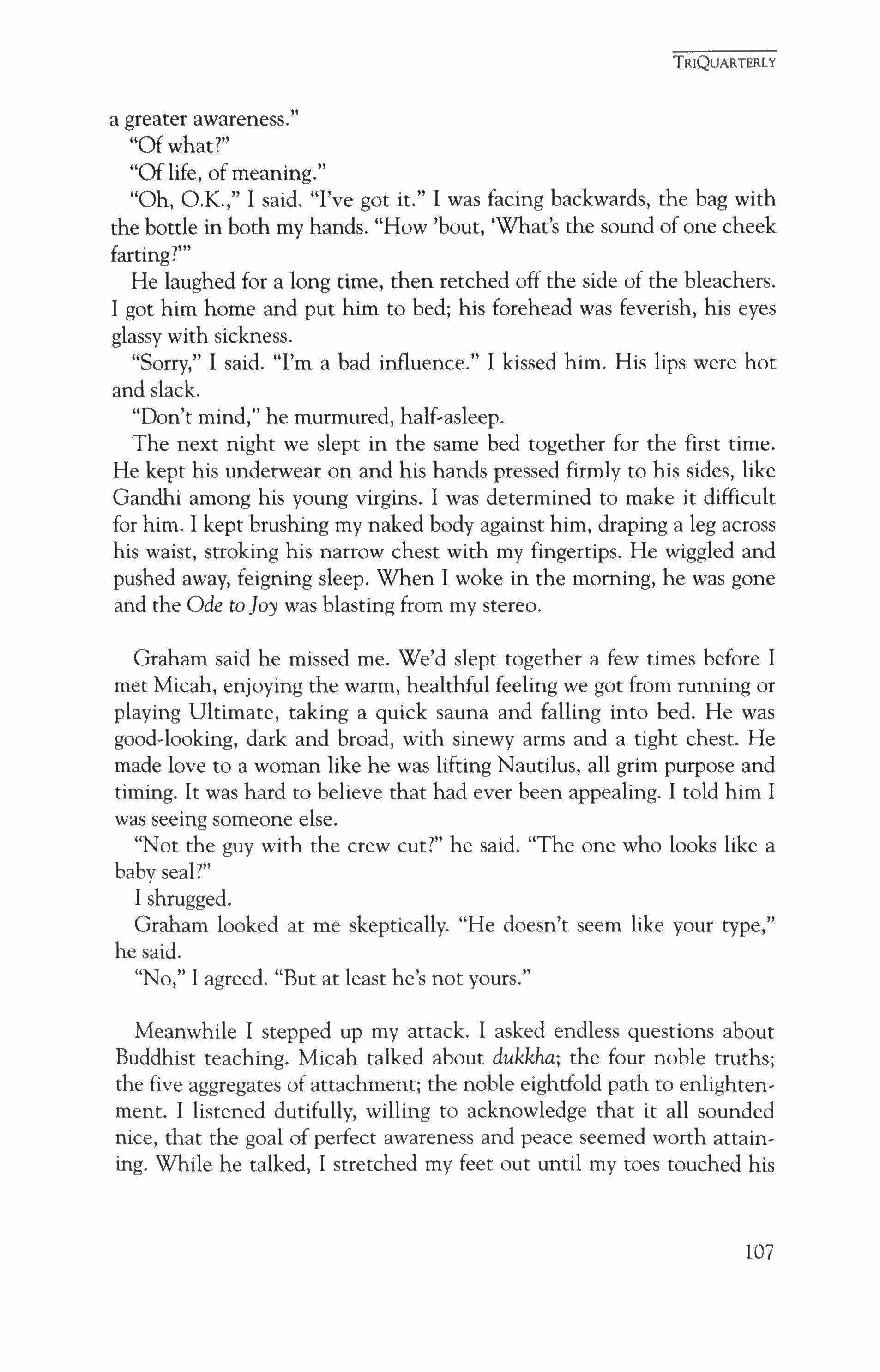 Publication of TriQuarterly is made possible in part by the donors of gifts and grants to the magazine. For their recent and continuing support, we are very pleased to thank the Illinois Arts Council, the Lannan Foundation, the John D. and Catherine T. MacArthur Foundation, the National Endowment for the Arts, the Sara Lee Foundation, the Wendling Foundation, and individ ual donors.
