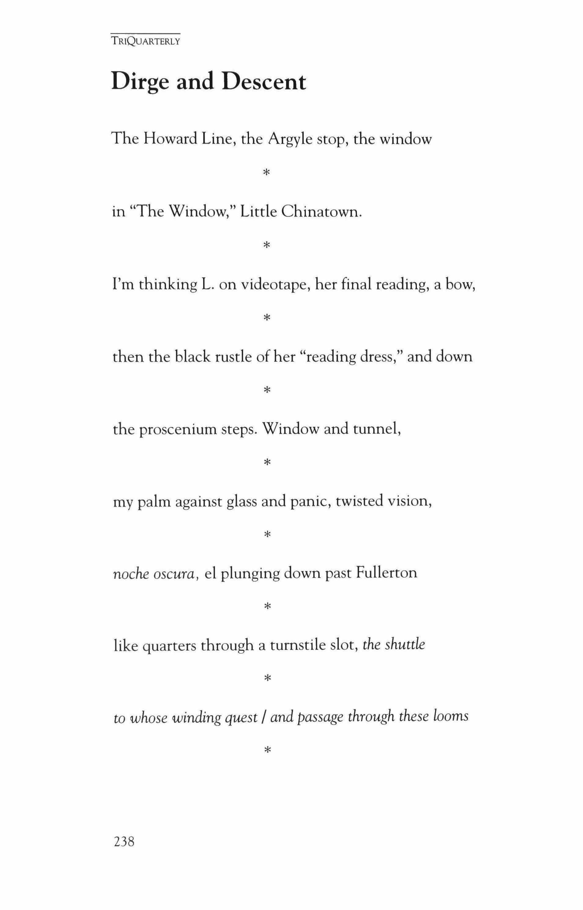 TRIQUARTERLY IS AN INTERNATIONAL JOURNAL OF WRITING, ART AND CULTURAL INQUIRY PUBLISHED AT NORTHWESTERN UNIVERSITY.
