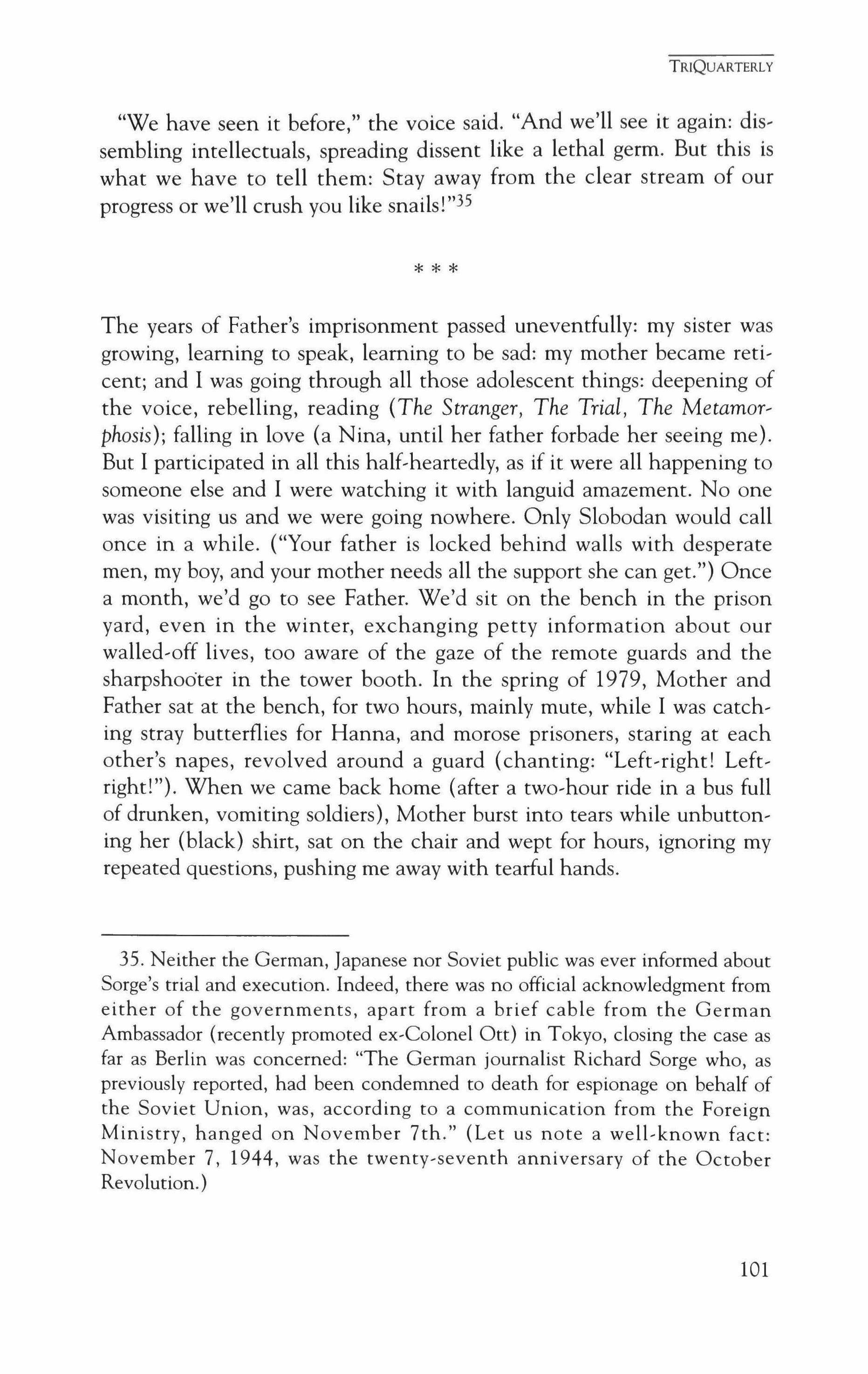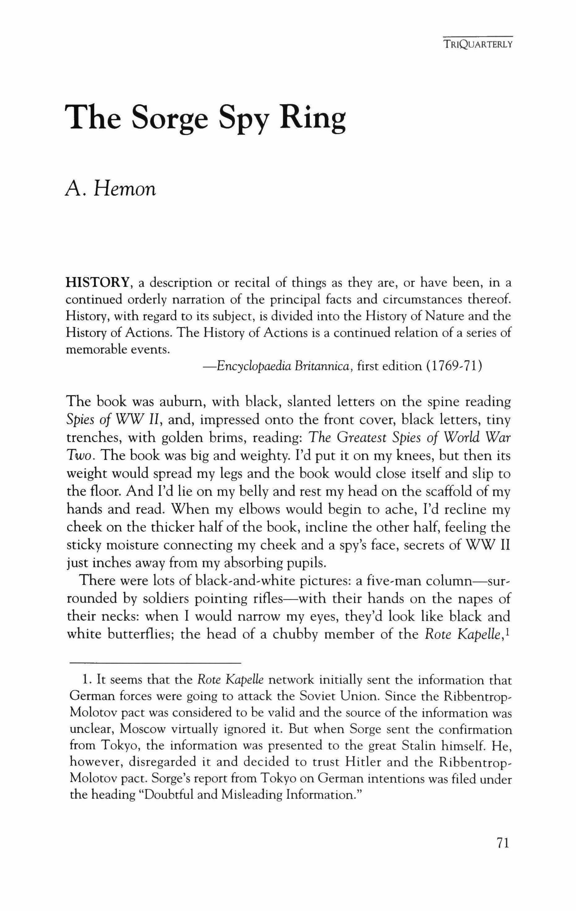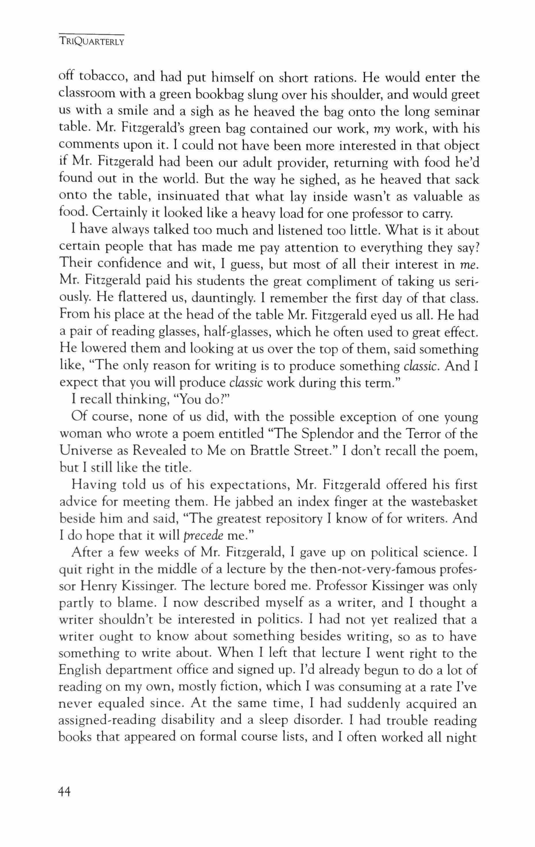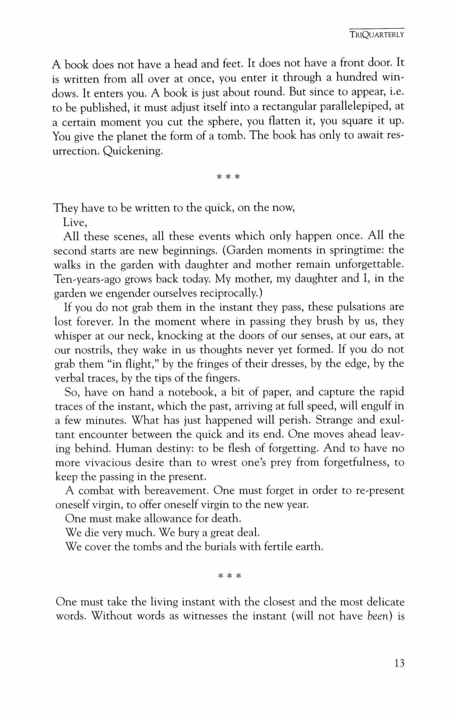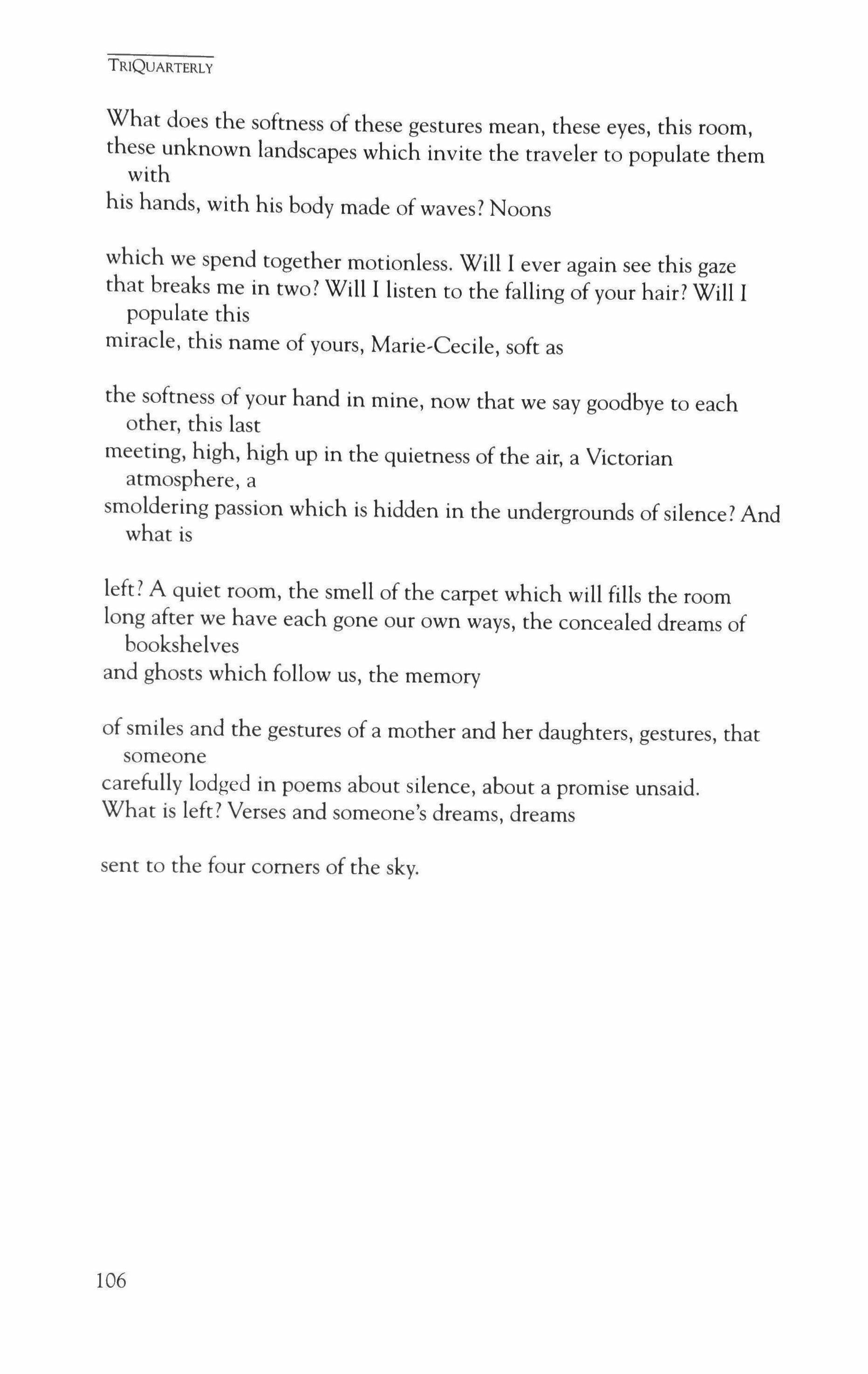 Publication of TriQuarterly is made possible in part by the donors of gifts and grants to the magazine. For their recent and continuing support, we are very pleased to thank The Illinois Arts Council, The Lannan Foundation, The John D. and Catherine T. MacArthur Foundation, The National Endow, ment for the Arts, The Sara Lee Foundation, The Chicago Community Trust, and individual donors.