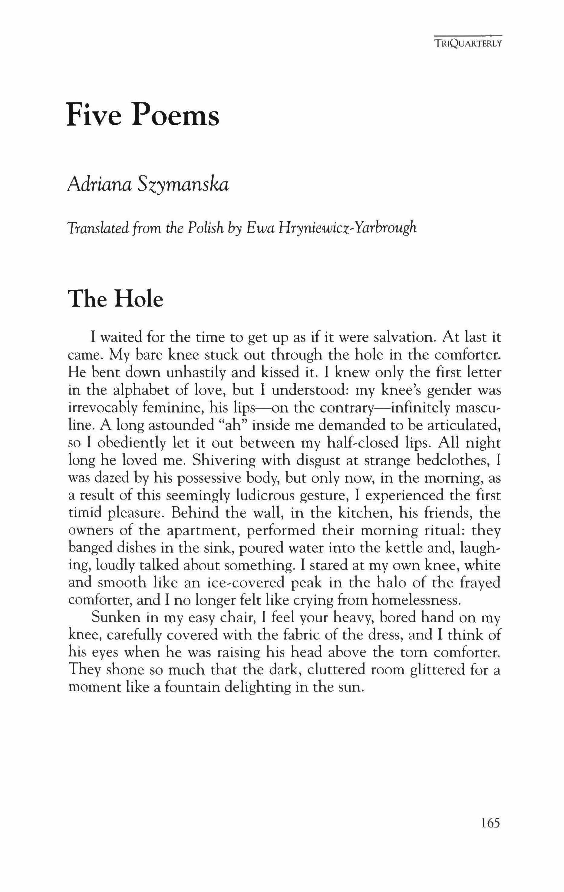 Translated from the Polish by Ewa Hryniewicz�Yarbrough Tempo Rubato 1; Fall Recurrence; Swim;