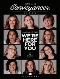 Australian Conveyancer incorporates paid advertising in its publication and other media entities as a part of its business model. Advertisements from all parts of the sector are welcomed into this environment. Advertising and editorial in this publication are separate functions, meaning an advertiser is not given preferential editorial considerations because it has a separate commercial arrangement. Editorial content is treated solely on news value and public interest. Scan QR