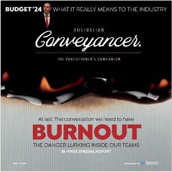 And as of mid-August, The Australian Conveyancer has become a daily news website. The special reports and the stories of people continue in a magazine format. We hope you like it.
