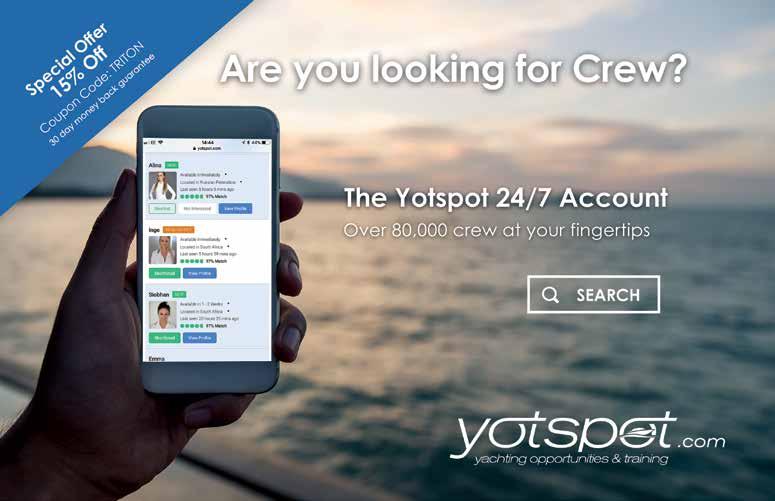 TritonNews.com The best crew have discovered Luxury You should too! FORT LAUDERDALE: +1 954 525 9959 SAN DIEGO: +1 858 224 2789 ANTIBES: +33 (0) 489 120 970 AUCKLAND: +64 (0) 9 282 4530 SYDNEY: +61 (2) 9053 6690 cre w@luxyachts.com - www.luxyachts.com