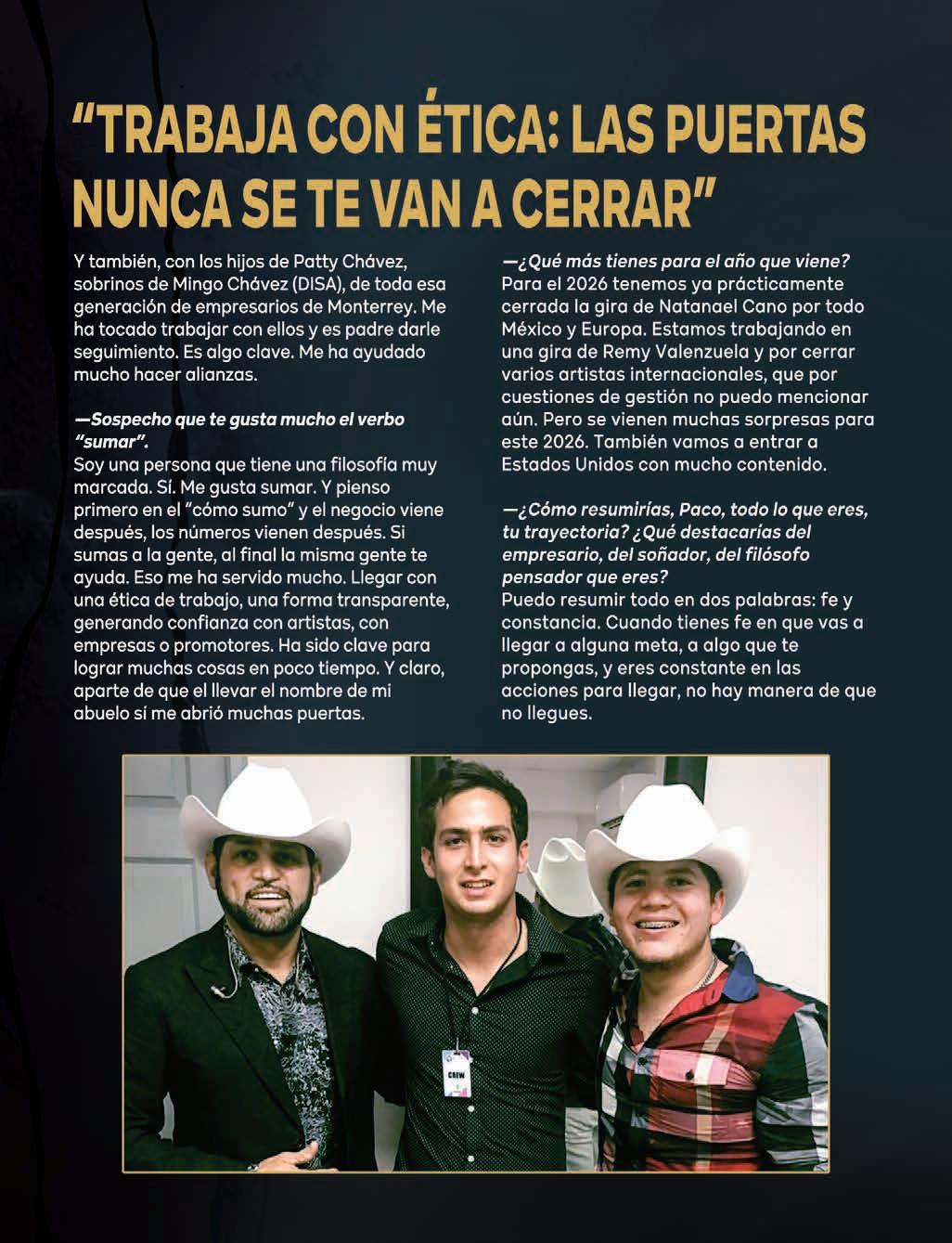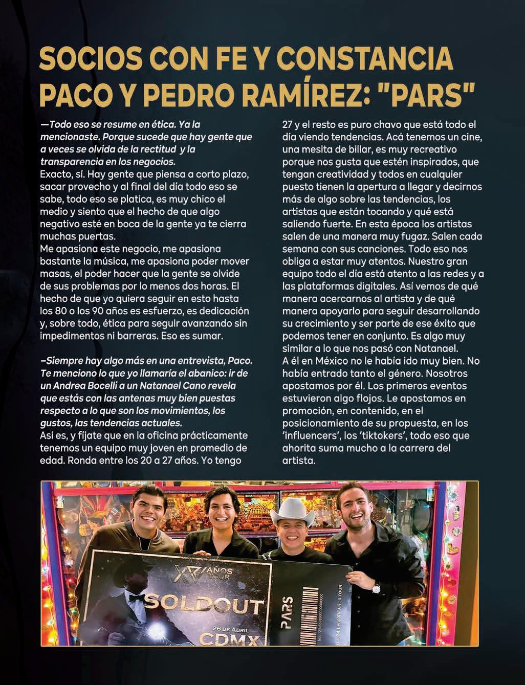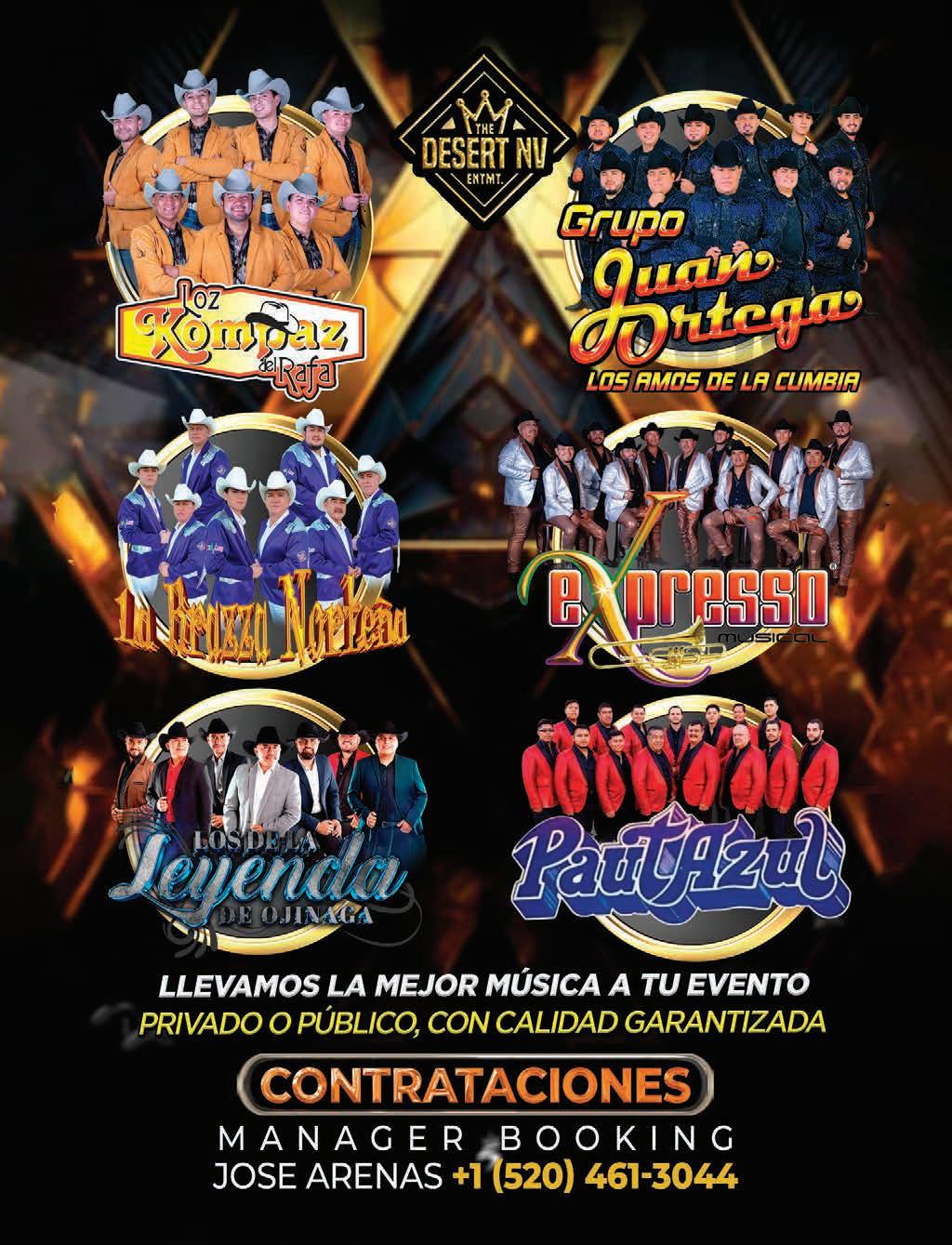 GALLARDÍA y TEMPLE para salir adelante junto con los grupos de fama internacional. LAS JUNTAS DE EMPRESARIOS apoyan, EXISTEN TALENTOS dormidos en el extasis de temor, la categoría de un grupo musical debe ser impactante. No existe la suerte, se busca la oportunidad. Cuando un grupo nuevo se decide, avanzar, ES IMPORTANTE ser original, jamás copiar, la originalidad es el talento y claro, por ende el éxito.