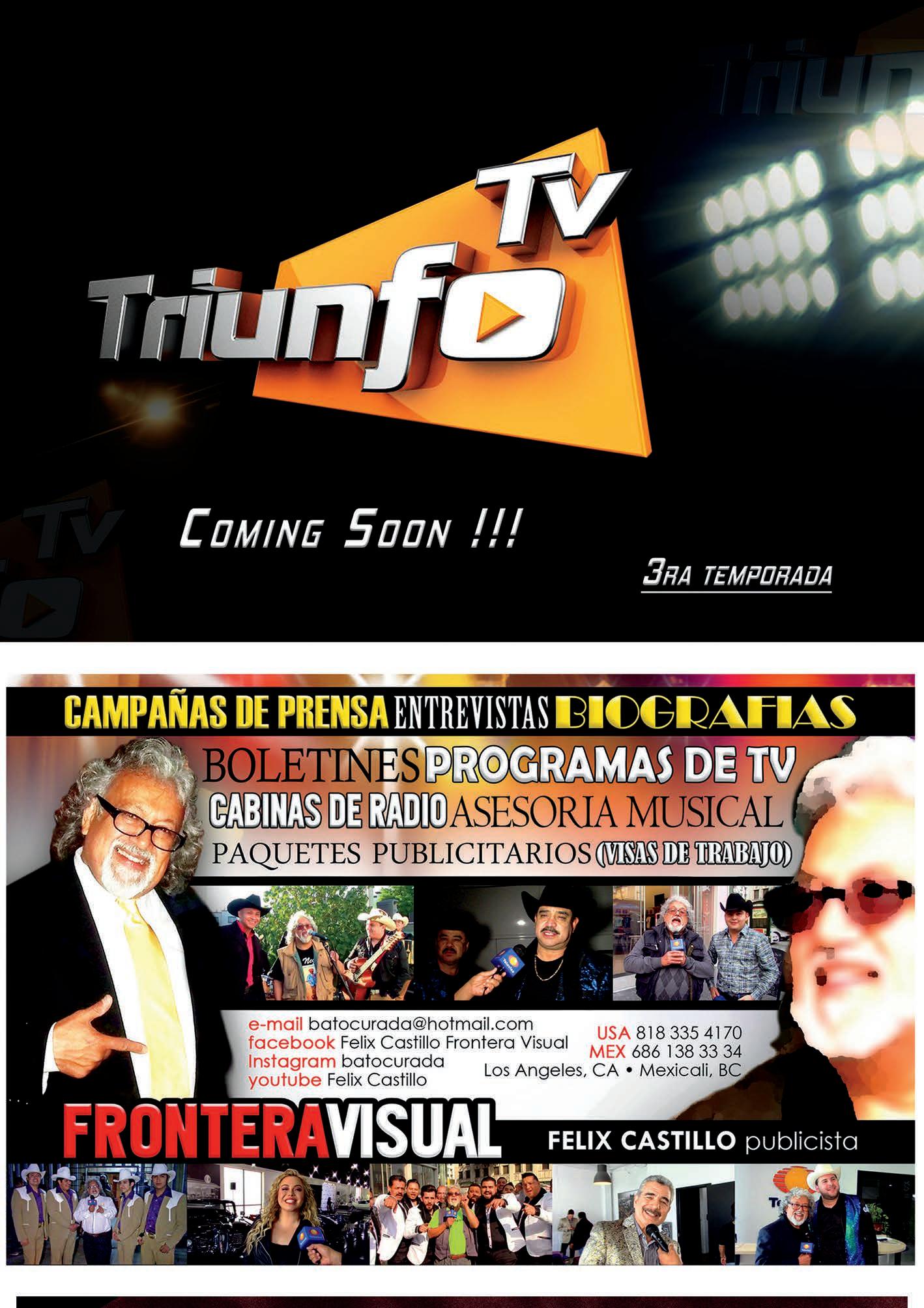 Editorial TRIUNFO no se hará responsable de pagos de publicidad no efectuados a cuentas oficiales TRIUNFO PUBLISHING, INC, Wells Fargo, OLGA SABRINA GARZA AGUIRRE, Bancomer, MIGUEL GARZA AGUIRRE, Banamex