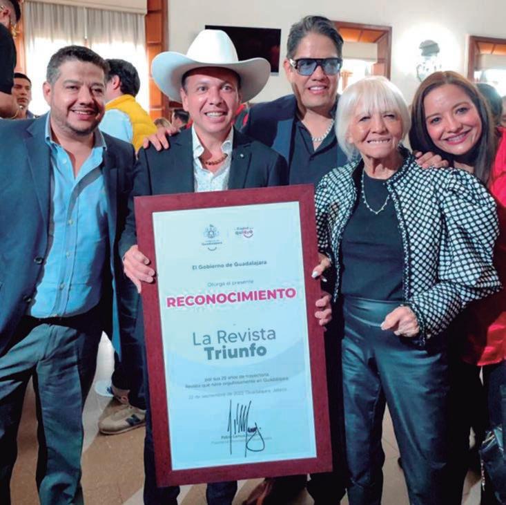 Pablo Lemus Navarro, Presiden te Municipal de Guadalajara felici tó a Miguel Garza Aguirre, su pre sidente y director general por los 25 años de trayectoria con los que cuenta la revista TRIUNFO Maga zine dentro de la música y del en tretenimiento, tanto a nivel nacio nal como internacional. Cabe hacer mención que TRIUNFO Magazine es la revista oficial de Promotores Unidos USA así mismo durante la entrega del reconocimientos acom pañaron al presidente y director general algunos de sus familiares,