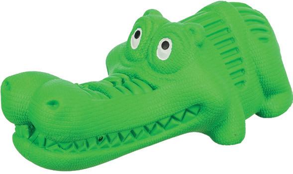 Gör snackstunden rolig och aktiverande för din hund med en tålig krokodil i naturgummi. Den kan fyllas med godis eller torrfoder och är helt ljudlös –perfekt för berikande inomhusaktivering. Storlek: 18 cm.