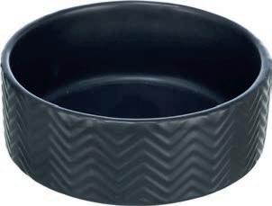 Stabil och stilren keramikskål med dekorativt vågmönster på utsidan. Praktisk att servera både mat och vatten i.