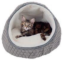 Grottformad bädd för katter och små hundar. Ett eget mysigt krypin kan vara en bra plats att känna trygghet på. Insidan är klädd med supermjuk pälsimitation av långhårig plysch. Storlek 35x26x40 cm. Rek. ca. pris: 499:-