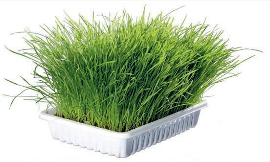 Gräsfrön i en praktisk odlingslåda för att så eget kattgräs. Enkelt och smidigt att använda. Nyttigt och berikande för katten. Innehåll: ca 100 g.
