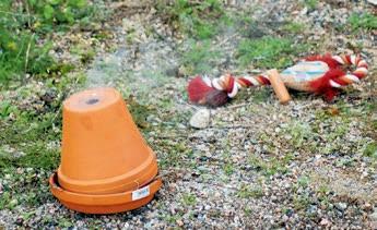 En rökgivare kan vara en upp- och nervänd lerkruka där du tänder lite mossa, kvistar eller papper. Hantera rökgivaren varsamt!