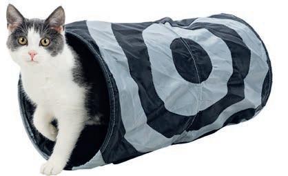 Att leka ”kurragömmalek” är ett naturligt beteende för många djur. Tunneln är stabil tack vare metall ringarna. Insida klädd i mjuk ply sch. Storlek ø 19x70 cm.