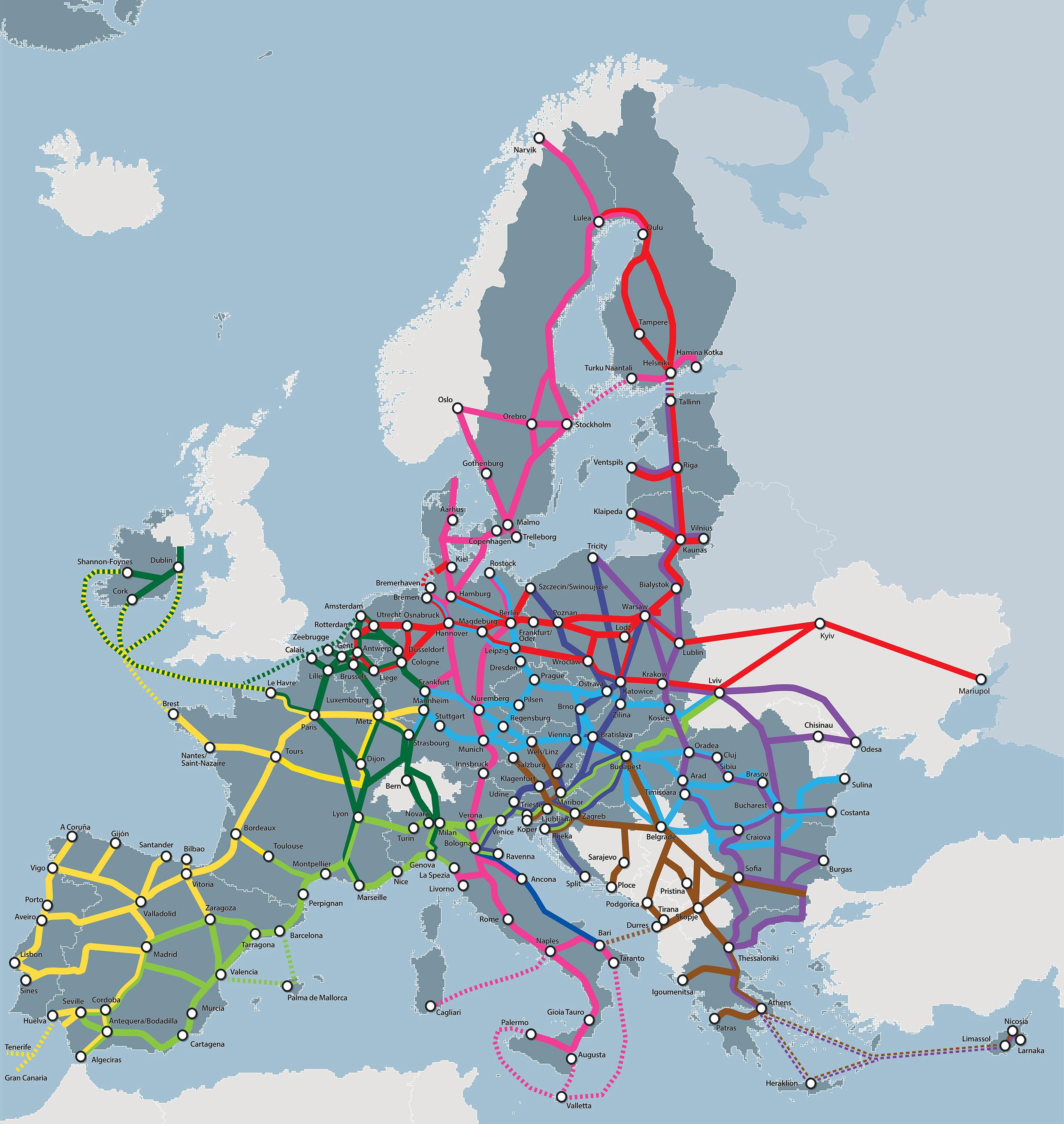 au moins 700 bars, tous les 200 km maximum le long du réseau central RTE-T. L’Union européenne recommande également qu’au moins une station de ravitaillement en hydrogène accessible au public soit installée dans chaque nœud urbain, ainsi que dans les pôles multimodaux afin de desservir d’autres modes de transport.