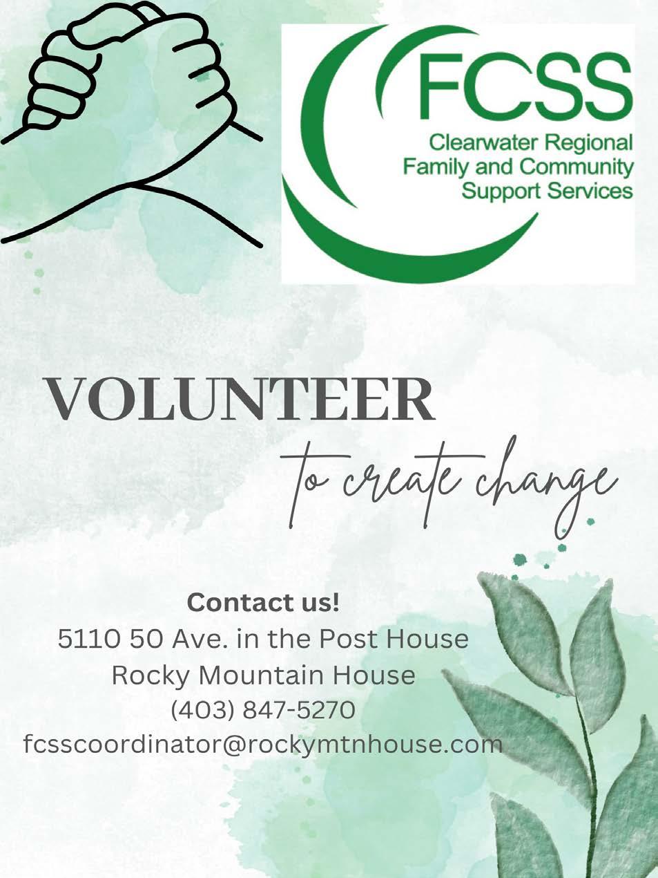 Services: Services: Information Referral Programming Volunteer Centre Community Grant Funding and more! Open 08:30 AM - 04:00 PM M-F At 5110-50 Ave. in the Post House Rocky Mountain House 403-847-5270 or fcssmanager@rockymtnhouse.com For More Information:
