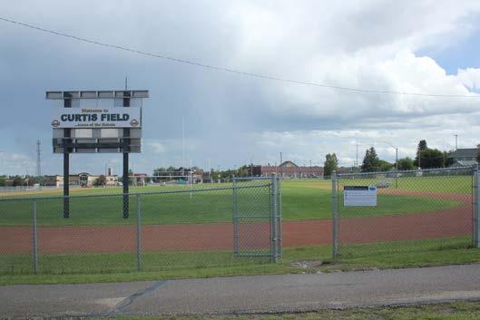 Curtis Field has stadium lighting with a 400metre shale track surrounding it. Located in front of the Rocky Regional Recreation Centre.