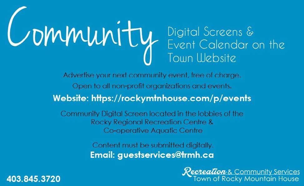 The go-to destination for fitness, fun and community connection! The Town operates a fitness centre, twin ice arenas, multiple meeting rooms, and a kids play centre. The Centre also houses the Rocky Curling Club with a rink, concession and lounge; the Arts & Craft Guild with a studio space; and the Evergreen Co -op Scorecard with skate sharpening.