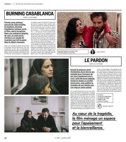 le caractère ardent. Ensemble, ils traversent les nuits en musique. Mais, bientôt, souffrances et secrets du passé les rattrapent, et les voilà partis pour le désert. Après deux courts métrages fiévreux produits par La Fémis – où il fut élève en réalisation –, Carcasse et H’rash, Ismaël El Iraki poursuit un travail sur la création comme souffle libérateur avec Burning Casablanca, production hallucinée dans un Maroc qui s’embrase. Pensé comme un film des seventies, tourné en CinemaScope et porté par une bande-son pleine de fougue – on y retrouve l’excellent groupe The Variations –, le film exhale une énergie électrisante, tant dans son montage nerveux que dans ses dialogues surréalistes, quelque part entre le western et le cartoon. Entre vengeance et affirmation de soi, Larsen et Rajae, sulfureux duo, chantent leur implacable désir de liberté, nourri d’un féminisme évident.