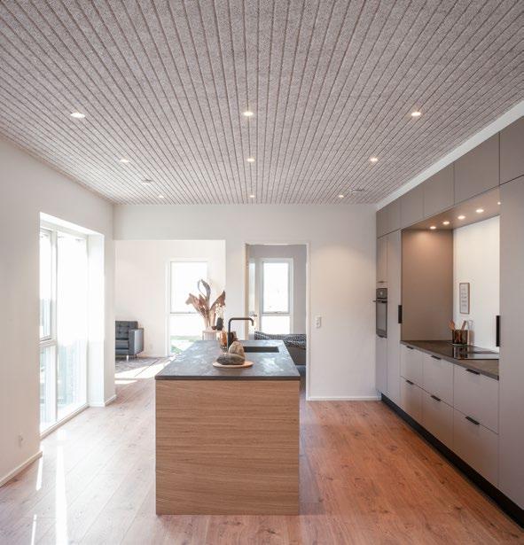 von Troldtekt, die 35 Millimeter stark sind. Wählen Sie zwischen zwei Varianten im Rillendekor – mit sechs oder zehn parallelen Rillen.
