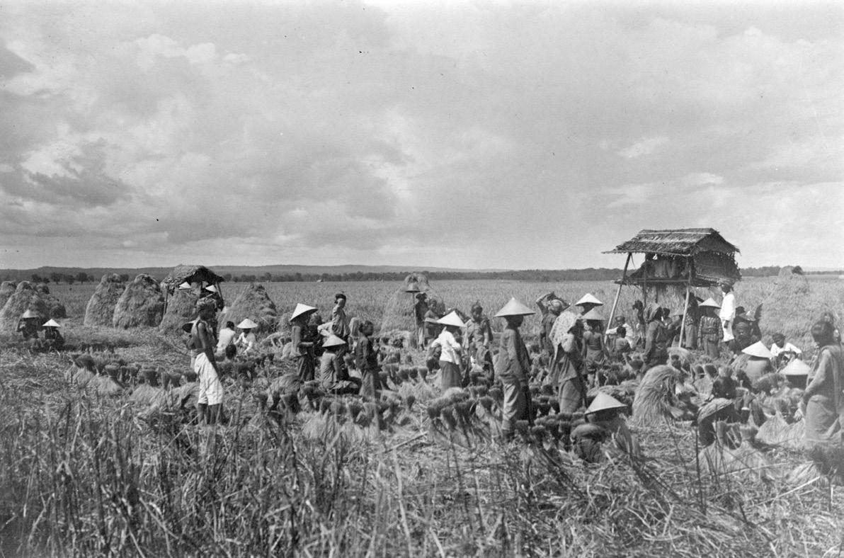 Harvesting of rice in Ngawi, year unknown. Leiden University Libraries, KITLV 779576.
