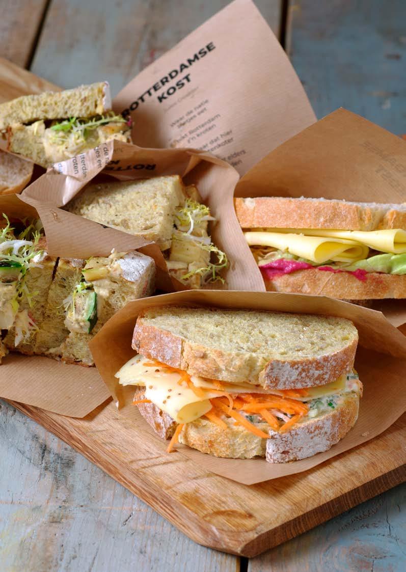 Old Rotterdam cheese with tomato and shallot dressing | egg salad with truffle, chives and Mesclun | hummus with grilled vegetables and rocket | chicken curry salad with sweet and sour cucumber | roast beef with red onion and chipotle mayonnaise | smoked salmon with fennel and lemon mayonnaise