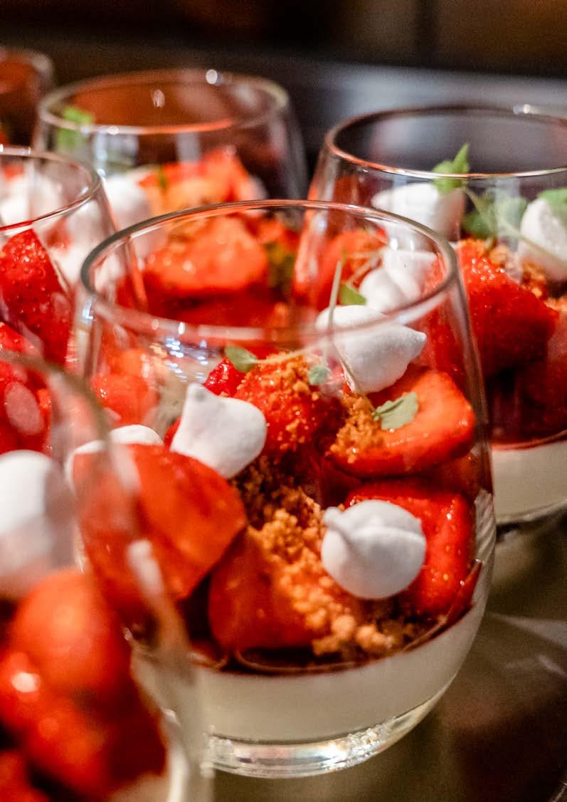 Strawberries | honey bread pudding | rhubarb compote | crumble