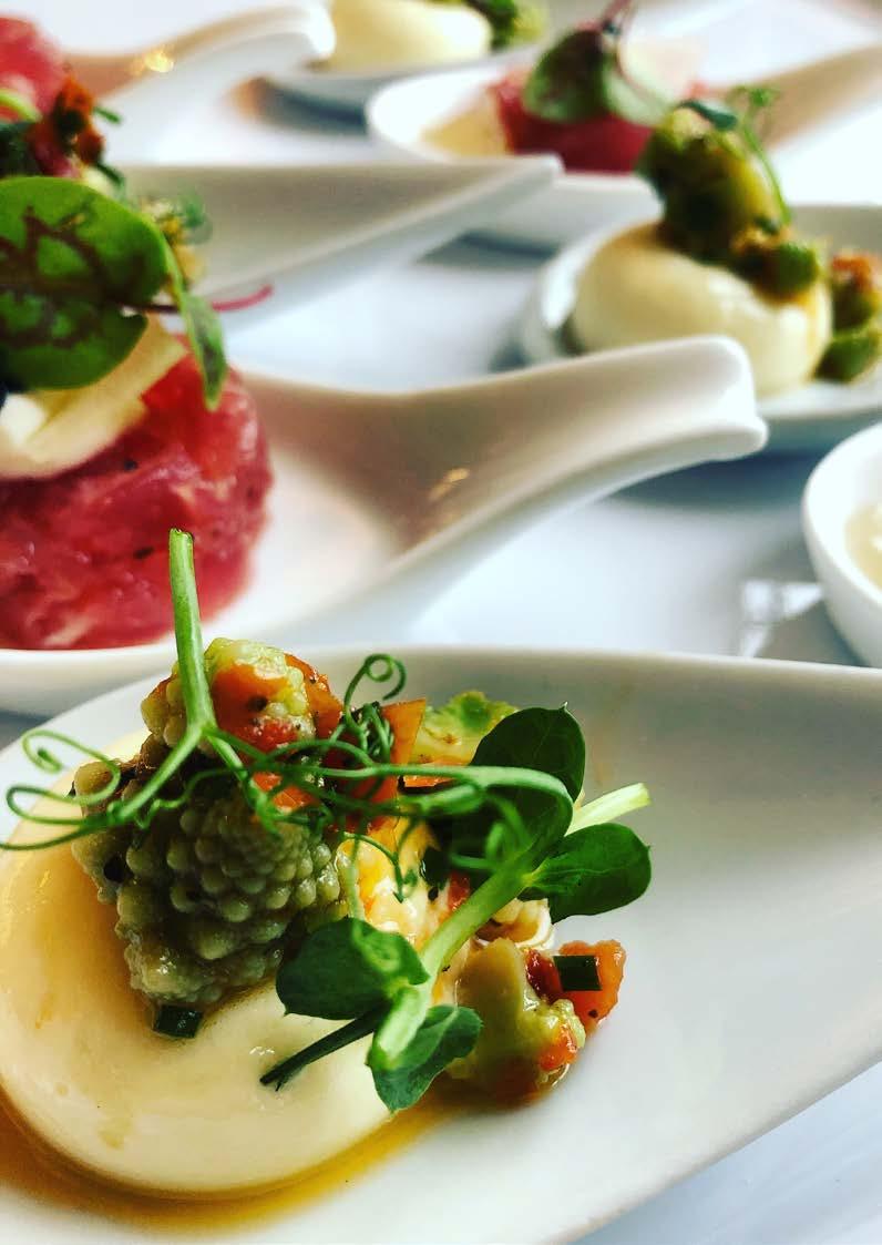 Bulgur salad, Granny Smith, aubergine and Râs al hânout | Mexican esquites, corn, tomato, ricotta and lime | tomato cremeux, marinated tomato, lettuce and croutons