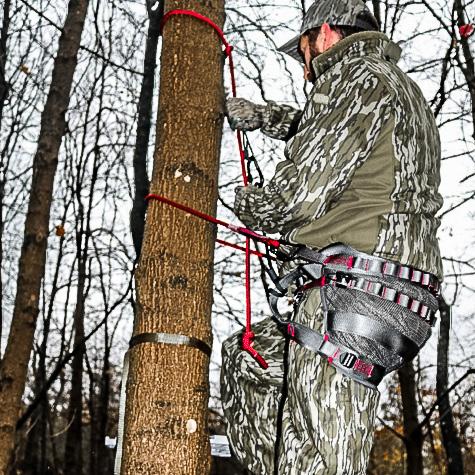 Always use a lineman’s rope in conjuction with a Trophyline Tree Saddle or Full Body Harness when using climbing sticks.
