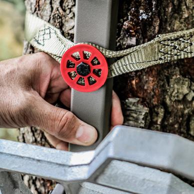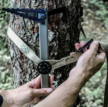 Always attach your Tree Tether to the tree, ensuring it’s secured to your saddle or harness, prior to stepping down from your Climbing Stick onto a Platform or Stand.