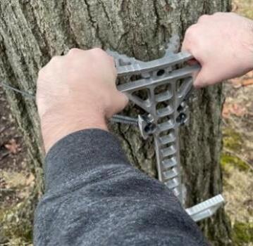 STEP FOUR: Continue this process until you are at your desired hunting height. Reverse this process when descending the tree.