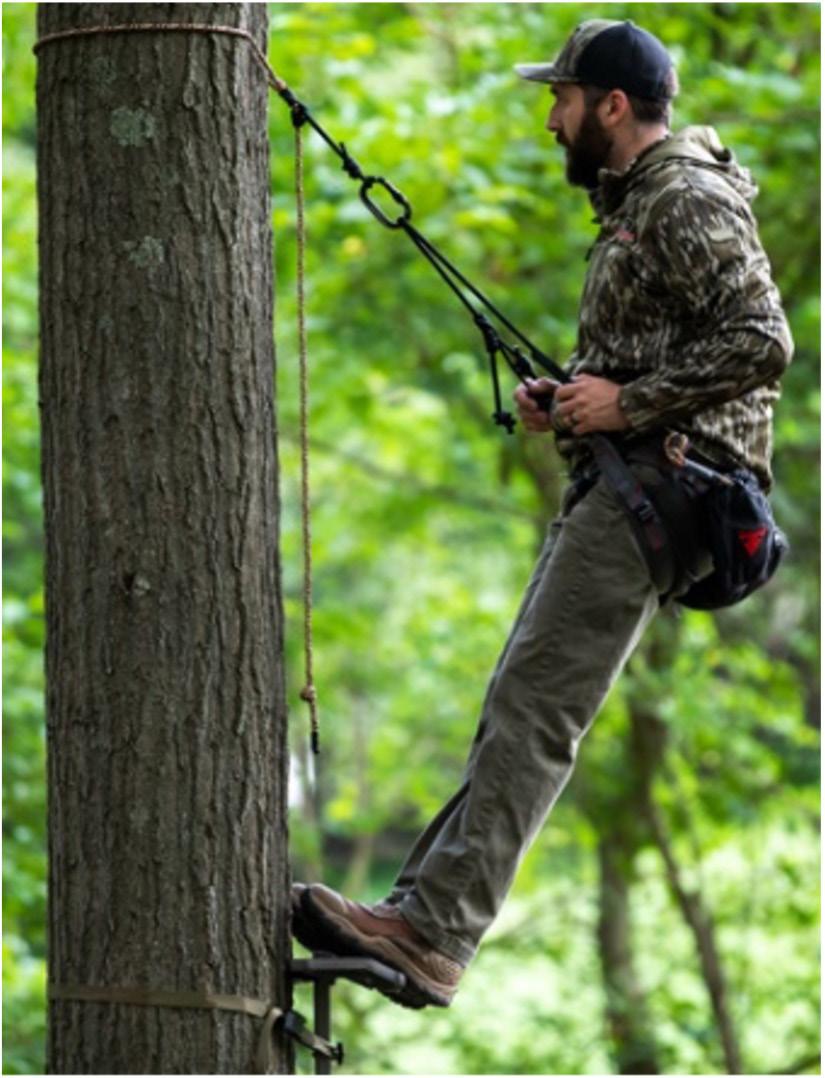 • Haul unloaded gun (chamber open & muzzle down), bow, or backpack up from the ground after climbing & securing properly to the tree.