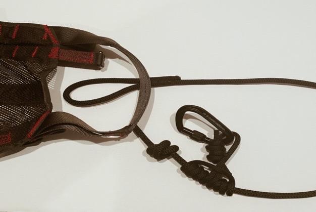 REMOVE LINEMAN ROPE: Once your Tree Tether is secured to your saddle and you are comfortable with the height of your prusik on your Tree Tether you may remove your lineman rope from your Lineman loop on either side. Do this by unscrewing the carabiner lock and safely store it in your pouch on the either of saddle all while the adjacent side of the Lineman Rope is still safely connected to your saddle.