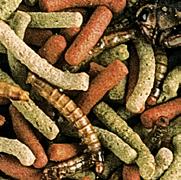 žuje nepříjemný zápach z trusu a znečištění vody. Optimální hladina bílkovin, tuků a vlákniny je shodná s potravinovými preferencemi dospělých suchozemsko-vodních želv se zajištěním jejich dokonalé kondice. Jitrocel kopinatý a pampeliška lékařská dodávají cenné rostlinné složky, které pozitivně působí na organizmus želv. Larvy Hermetia illucens obsažené v krmi vu jsou zdrojem pro želvy nezbytných aminokyselin, stejně jako vápník a fosfor v příznivém poměru, který se u jiného hmyzu nevyskytuje. Ryby, korýši (krevety 8%, kril 2%) a měkkýši (kalmáry 3%), které jsou obsaženy v krmivu, povzbuzují svým aroma želvy ke konzumaci. Správný poměr vápníku k fosforu (2:1) jako i bohaté složení vitamínů, mikro a makroelemen tů chrání před křivicí. Přidáním astaxantinu do krmiva se zesilují přirozené barvy želv. Krmivo lze úspěšně podávat i velkým všežravým rybám.