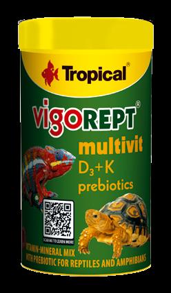 Je to vitamínovo minerální směs s prebiotiky pro plazy a obojživelníky – tento pří pravek jednoduše a účinně doplňuje v dietě nezbytné vitamíny D3 a K i jiné cenné biolo gicky účinné složky. Při pravidelném použí vání společně s Vigorept Mineral zaručuje správný růst a rozvoj. Podporuje vstřebává ní vápníku z trávicího traktu a reguluje jeho správný poměr v organizmu, což zabraňuje křivici (MBD) u plazů a obojživelníků, jakož i dalším zdravotním účinkům způsobených nedostatkem vitamínů a minerálů. Půso bí proti deformaci krunýře želv. Má vysoký a zároveň bezpečný obsah vitamínů D3 i K. Přítomnost vitamínu D3 určuje vstřebávání vápníku z krmiva do krve a vitamin K je zod