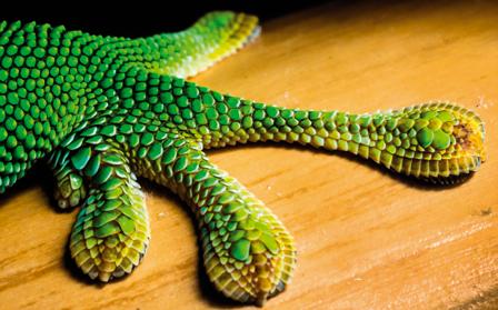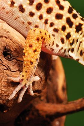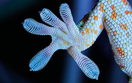 gekoni mají na prstech přísavky, které jim umožňují po hyb po plochých, hladkých a svislých površích? Tyto pří savky se nazývají lamely. Jsou vyrobeny z mikrostruktur připomínajících ploché překrývající se lamely, vybave né stovkami tisíc ještě menších chloupků s háčky. Tyto struktury jsou tak malé, že se mohou snadno zachytit a dokonce spočívat na nerovnostech skleněné tabule. Nedávné studie ukázaly, že tento mechanismus probí há na molekulární úrovni a že jsou do něj zapojeny Van der Waalsovy síly. Díky tomu se tito plazi mohou pohy bovat hbitě na svislých površích, dokonce tak hladkých jako bambusové výhonky, velké listy, nebo sklo terária. To je jedna z vlastností, která odlišuje gekony od euble farů. Eublefar noční, také nesprávně nazývaný jako ge končík noční, nemá na prstech lamely.